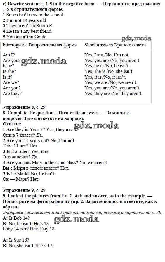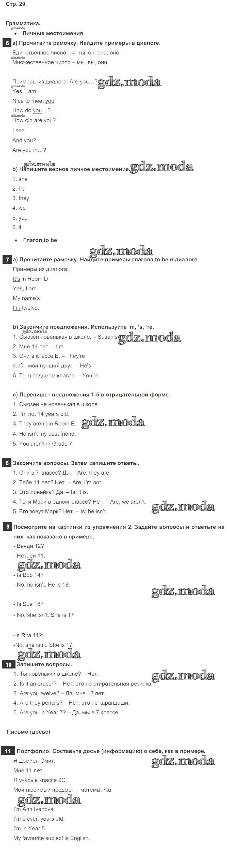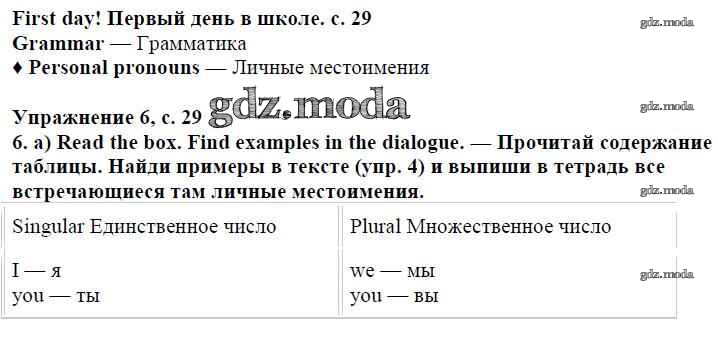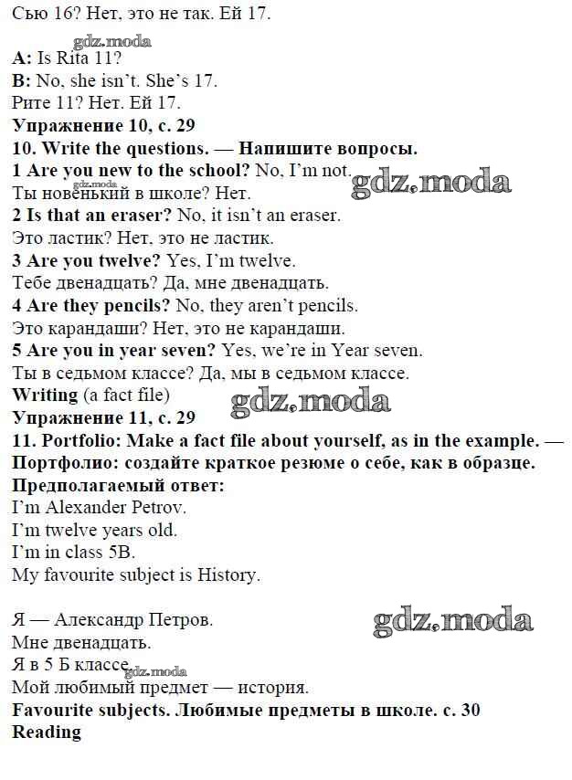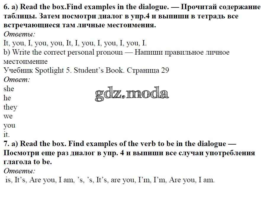 ОТВЕТ на задание № стр. 29 Учебник по Английскому языку 5 класс Ваулина Spotlight