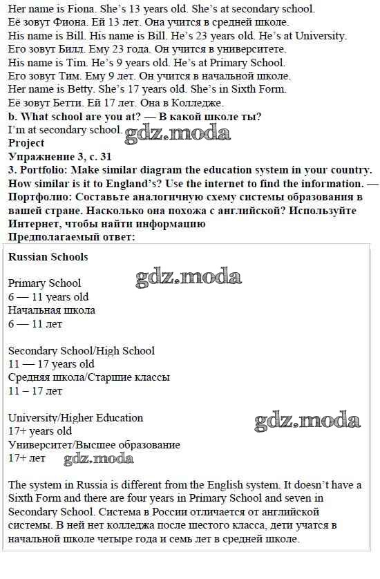 ОТВЕТ на задание № стр. 31 Учебник по Английскому языку 5 класс Ваулина Spotlight