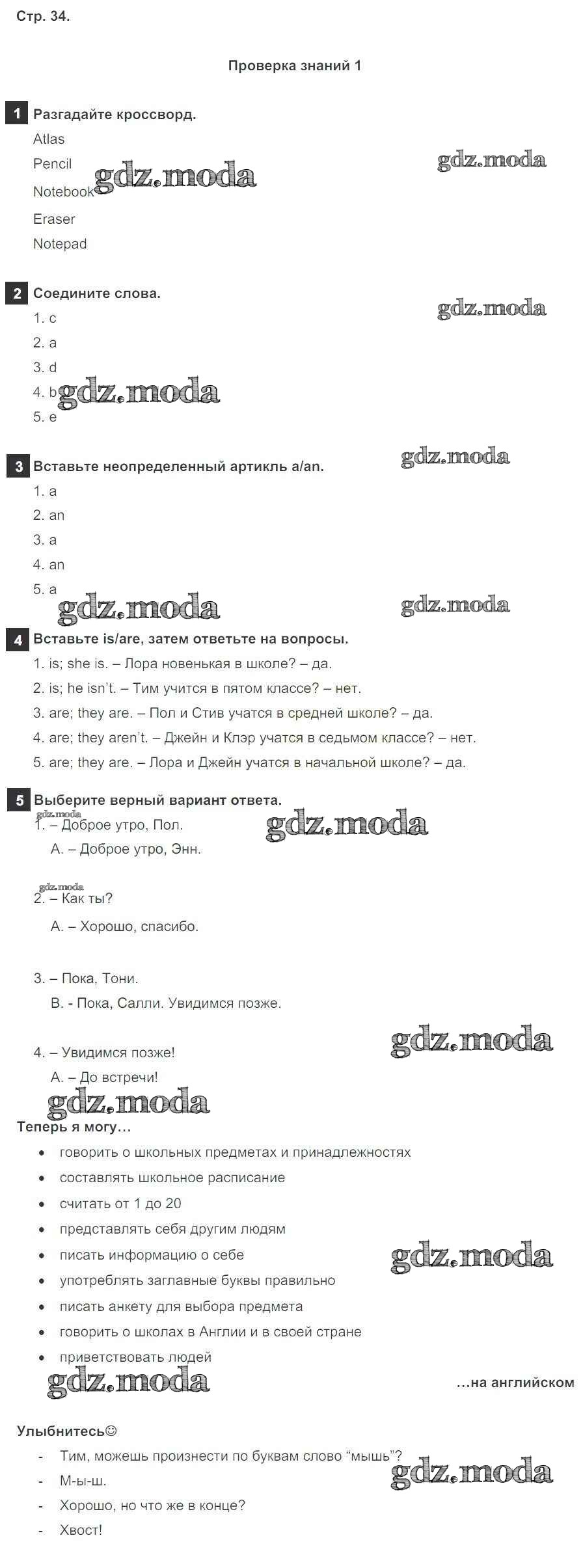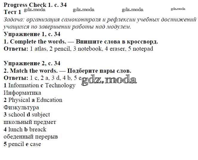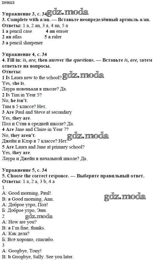 ОТВЕТ на задание № стр. 34 Учебник по Английскому языку 5 класс Ваулина Spotlight