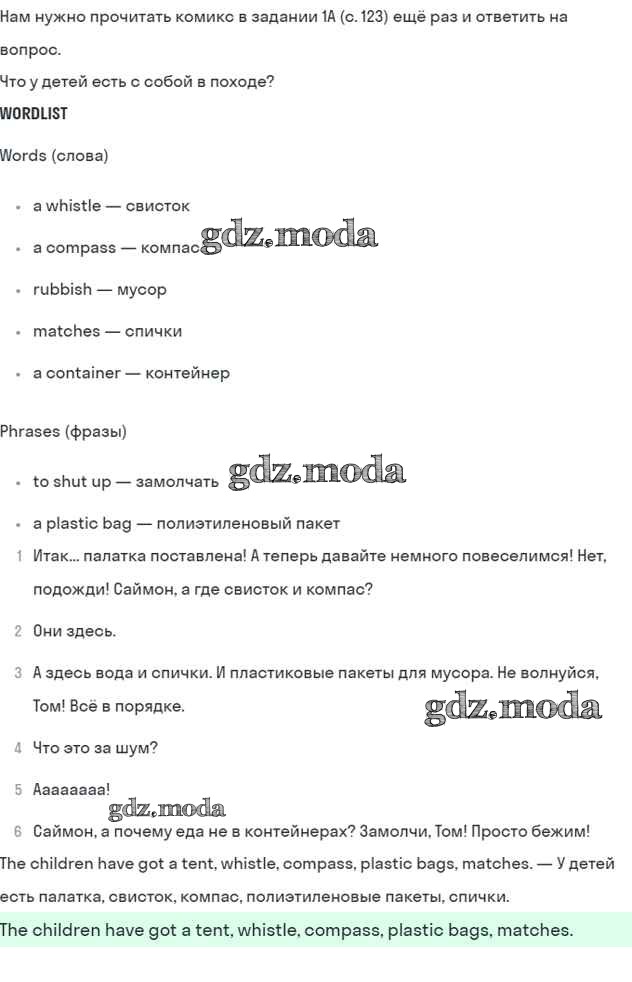 ОТВЕТ на задание № стр. 123 Учебник по Английскому языку 5 класс Ваулина Spotlight