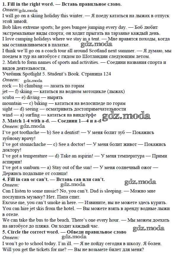 ОТВЕТ на задание № стр. 124 Учебник по Английскому языку 5 класс Ваулина Spotlight
