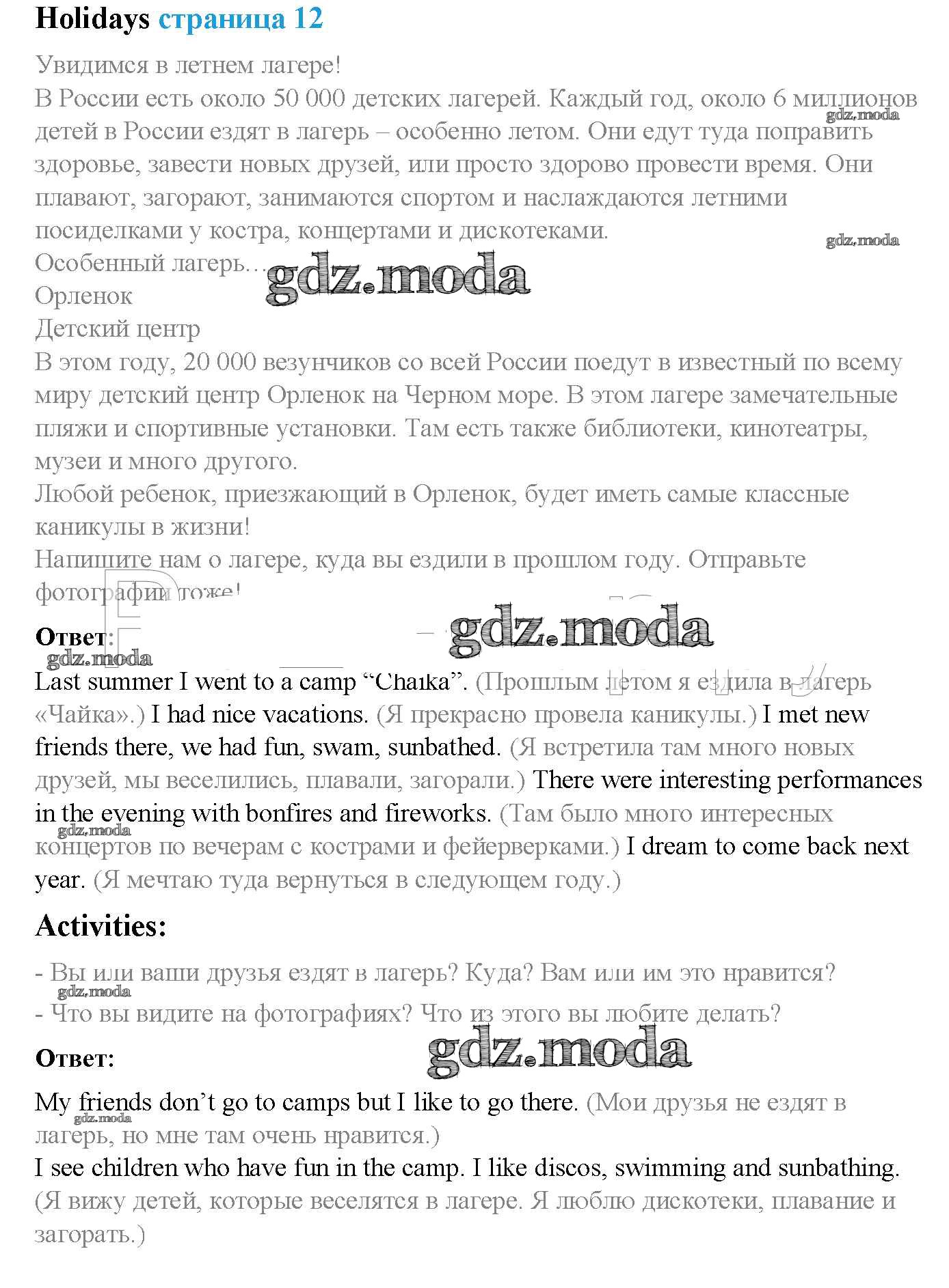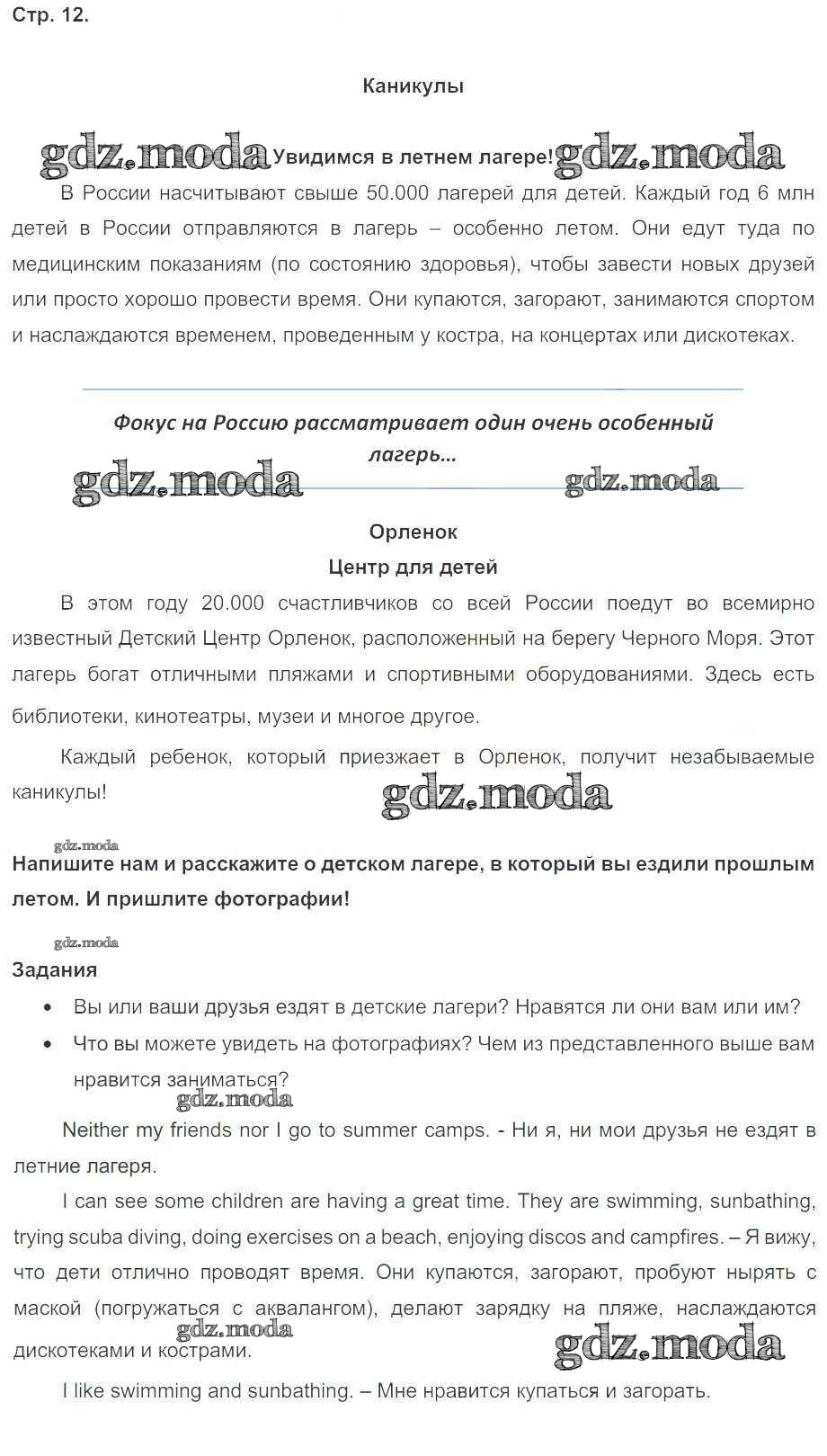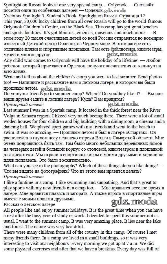 ОТВЕТ на задание № стр. 12 Учебник по Английскому языку 5 класс Ваулина Spotlight