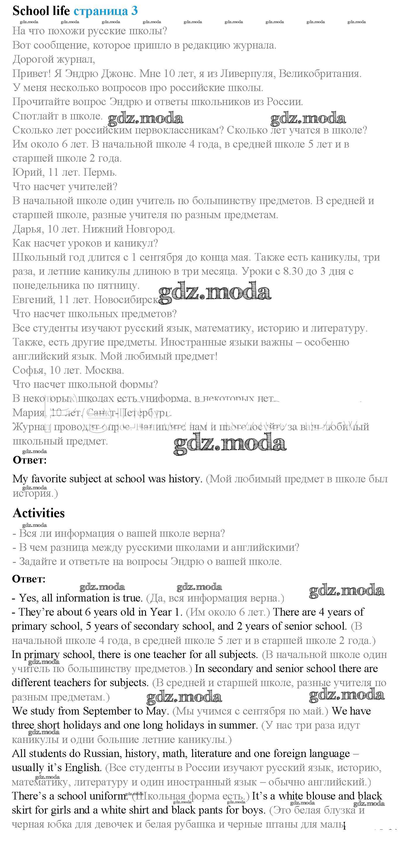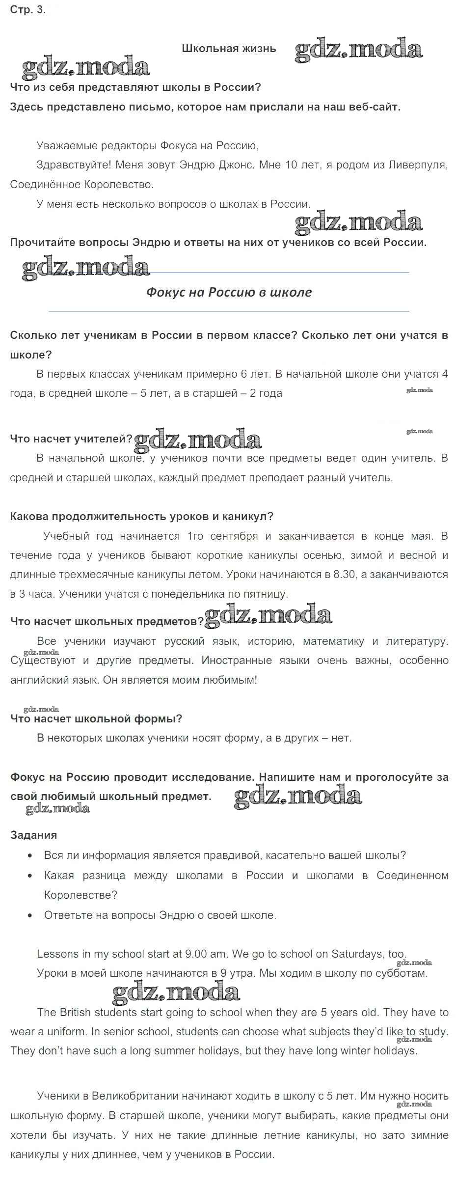 ОТВЕТ на задание № стр. 3 Учебник по Английскому языку 5 класс Ваулина Spotlight