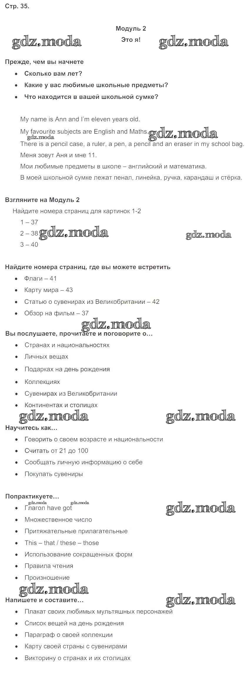 ОТВЕТ на задание № стр. 35 Учебник по Английскому языку 5 класс Ваулина Spotlight