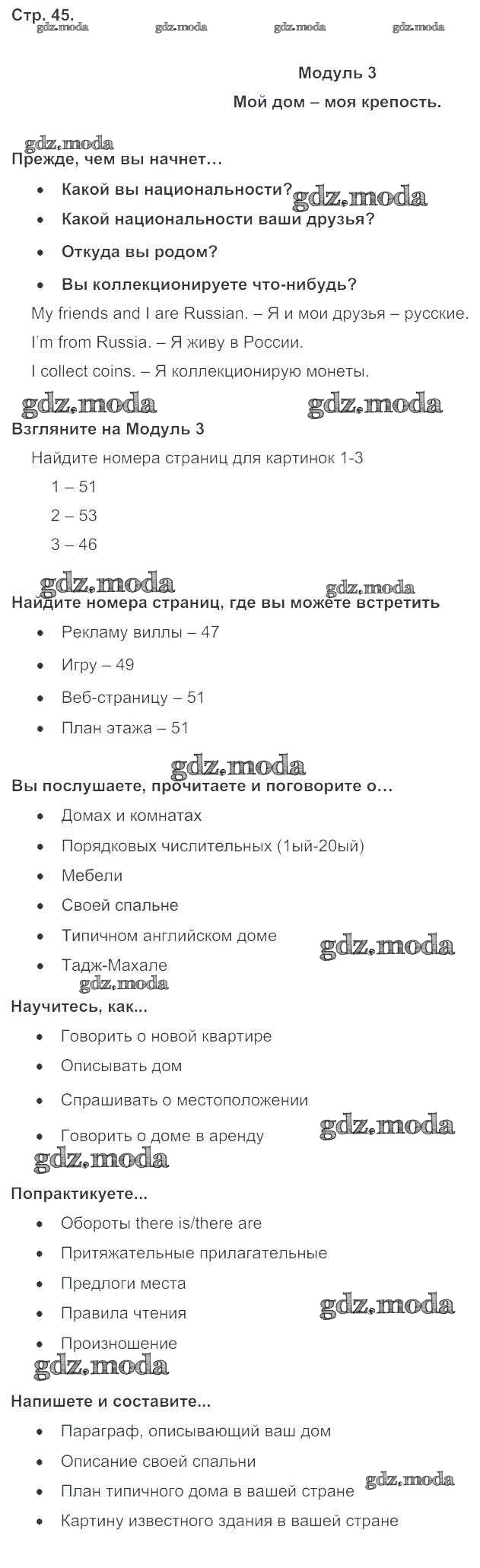 ОТВЕТ на задание № стр. 45 Учебник по Английскому языку 5 класс Ваулина Spotlight