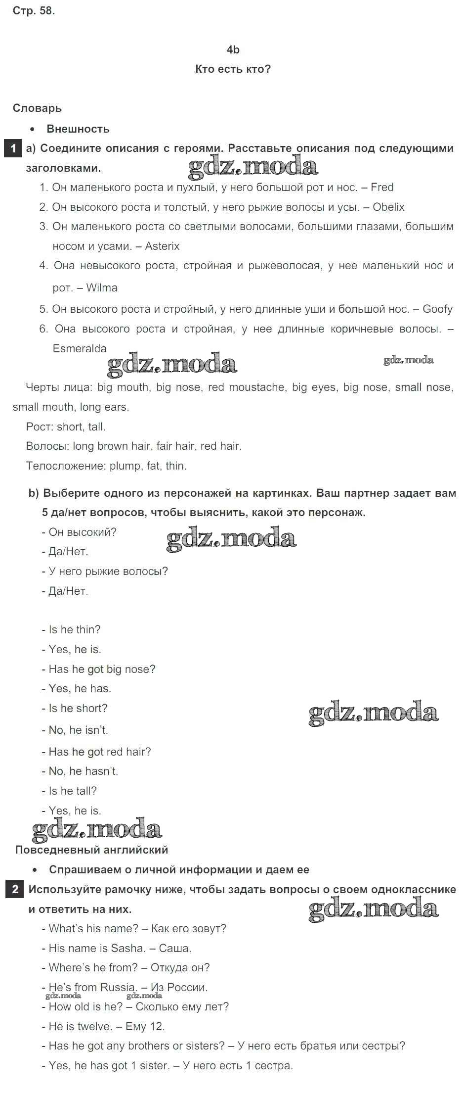 ОТВЕТ на задание № стр. 58 Учебник по Английскому языку 5 класс Ваулина Spotlight