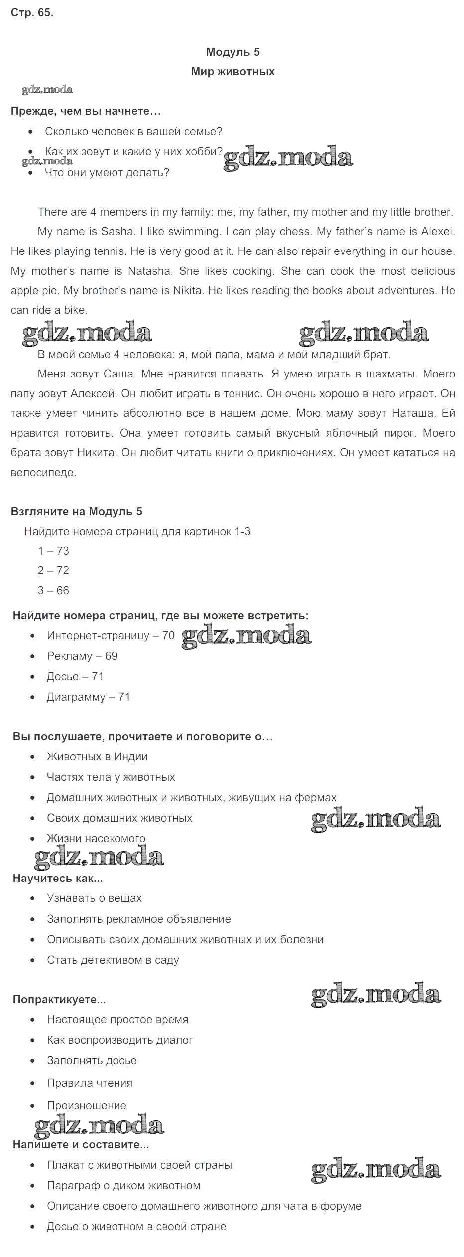 ОТВЕТ на задание № стр. 65 Учебник по Английскому языку 5 класс Ваулина Spotlight