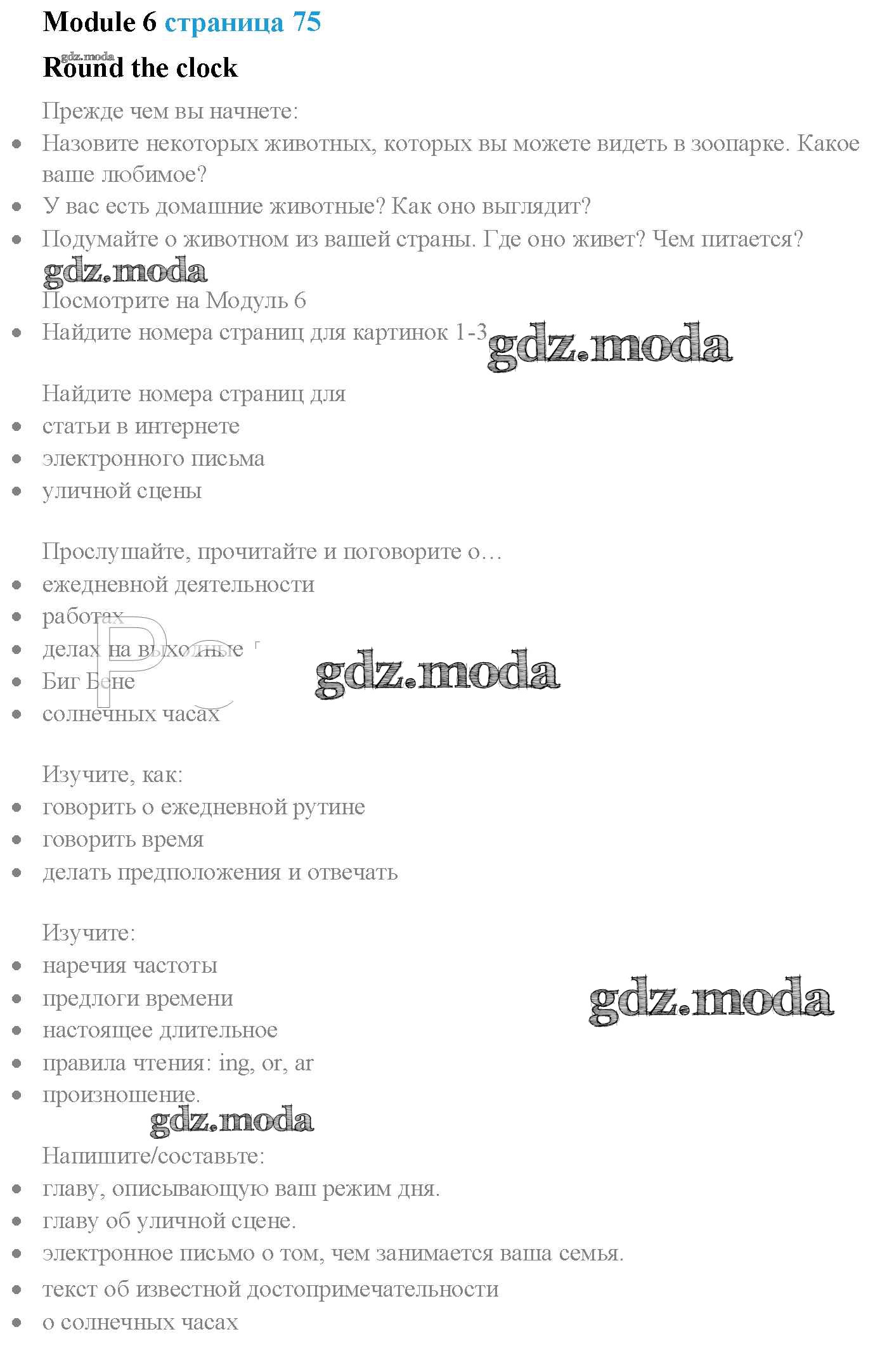 ОТВЕТ на задание № стр. 75 Учебник по Английскому языку 5 класс Ваулина Spotlight