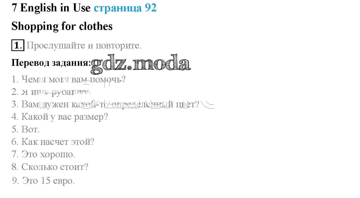 ОТВЕТ на задание № стр. 92 Учебник по Английскому языку 5 класс Ваулина Spotlight