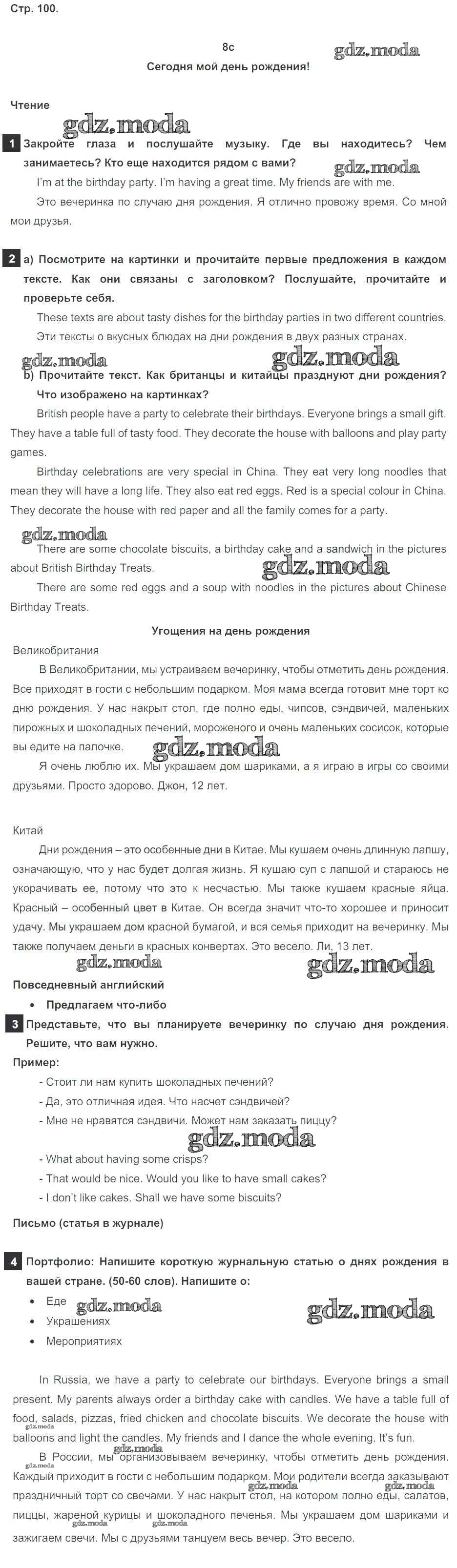 ОТВЕТ на задание № стр. 100 Учебник по Английскому языку 5 класс Ваулина Spotlight