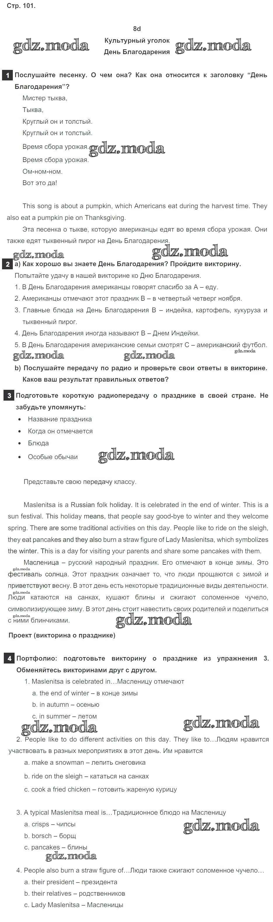 ОТВЕТ на задание № стр. 101 Учебник по Английскому языку 5 класс Ваулина Spotlight