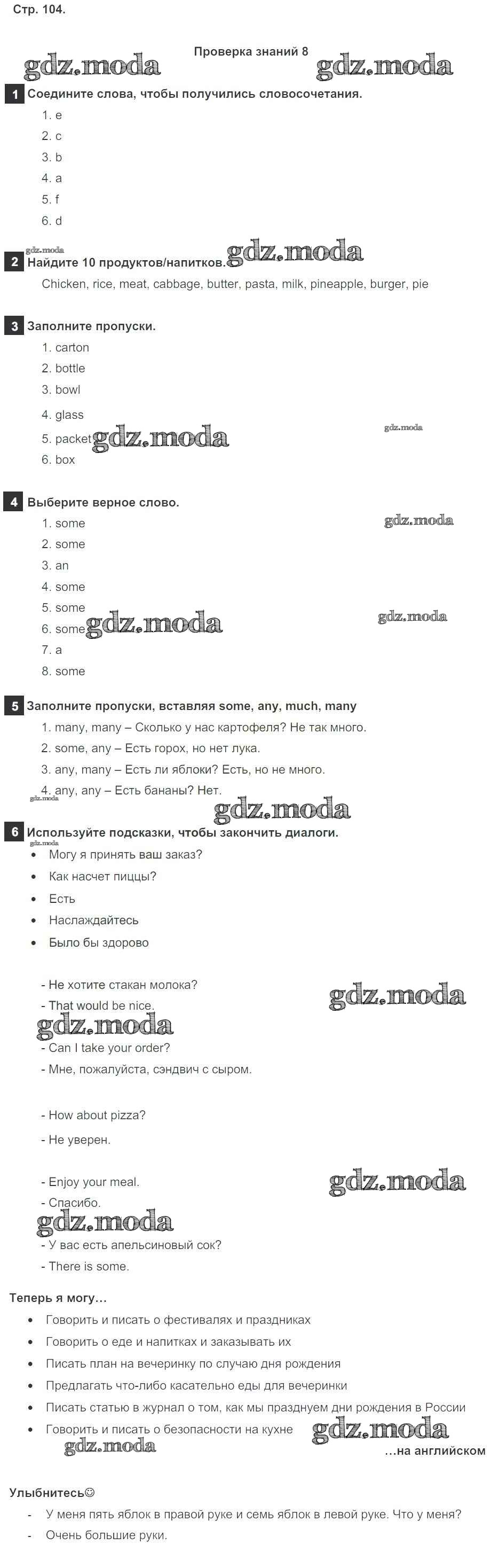 ОТВЕТ на задание № стр. 104 Учебник по Английскому языку 5 класс Ваулина Spotlight