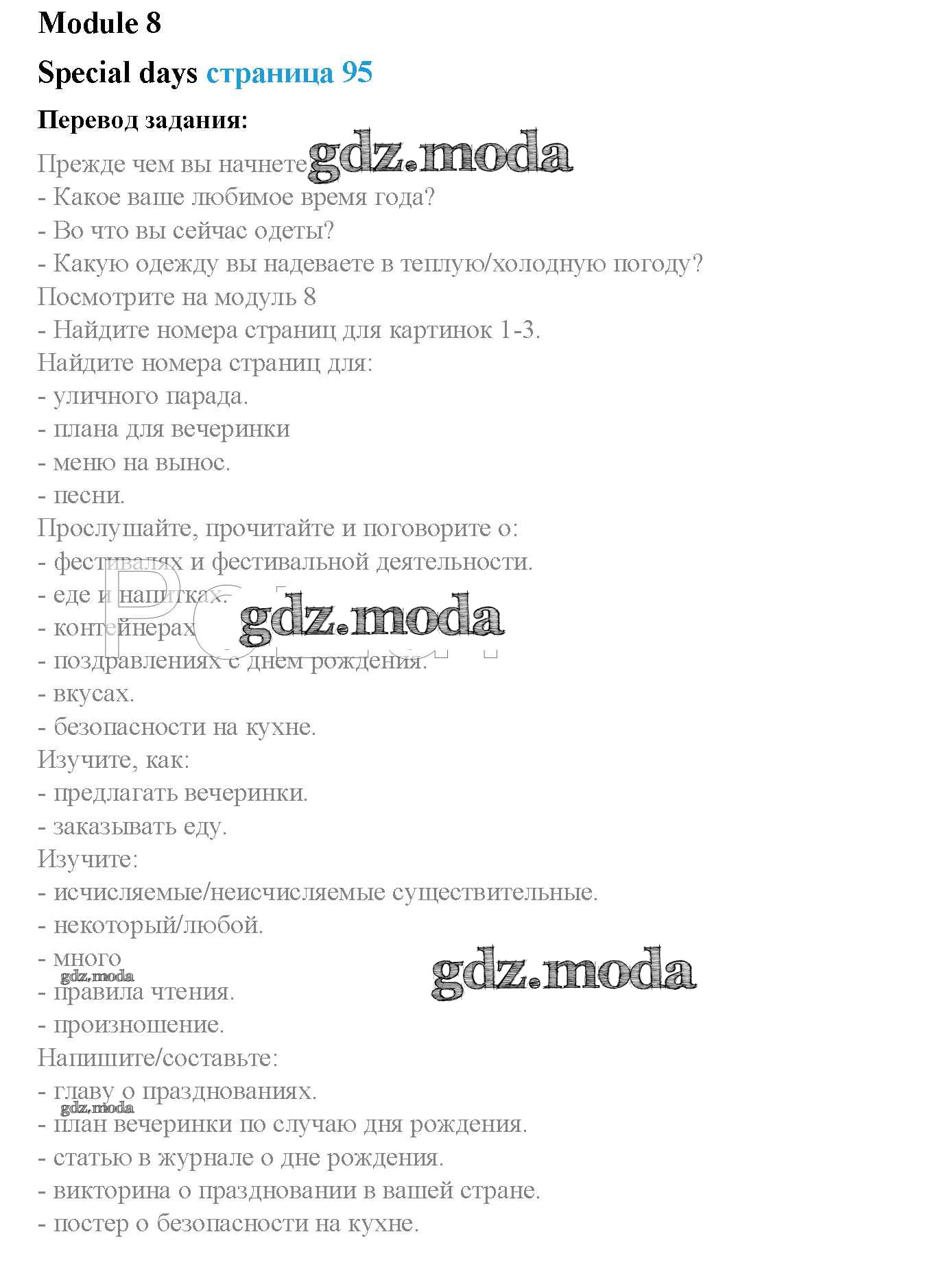 ОТВЕТ на задание № стр. 95 Учебник по Английскому языку 5 класс Ваулина Spotlight
