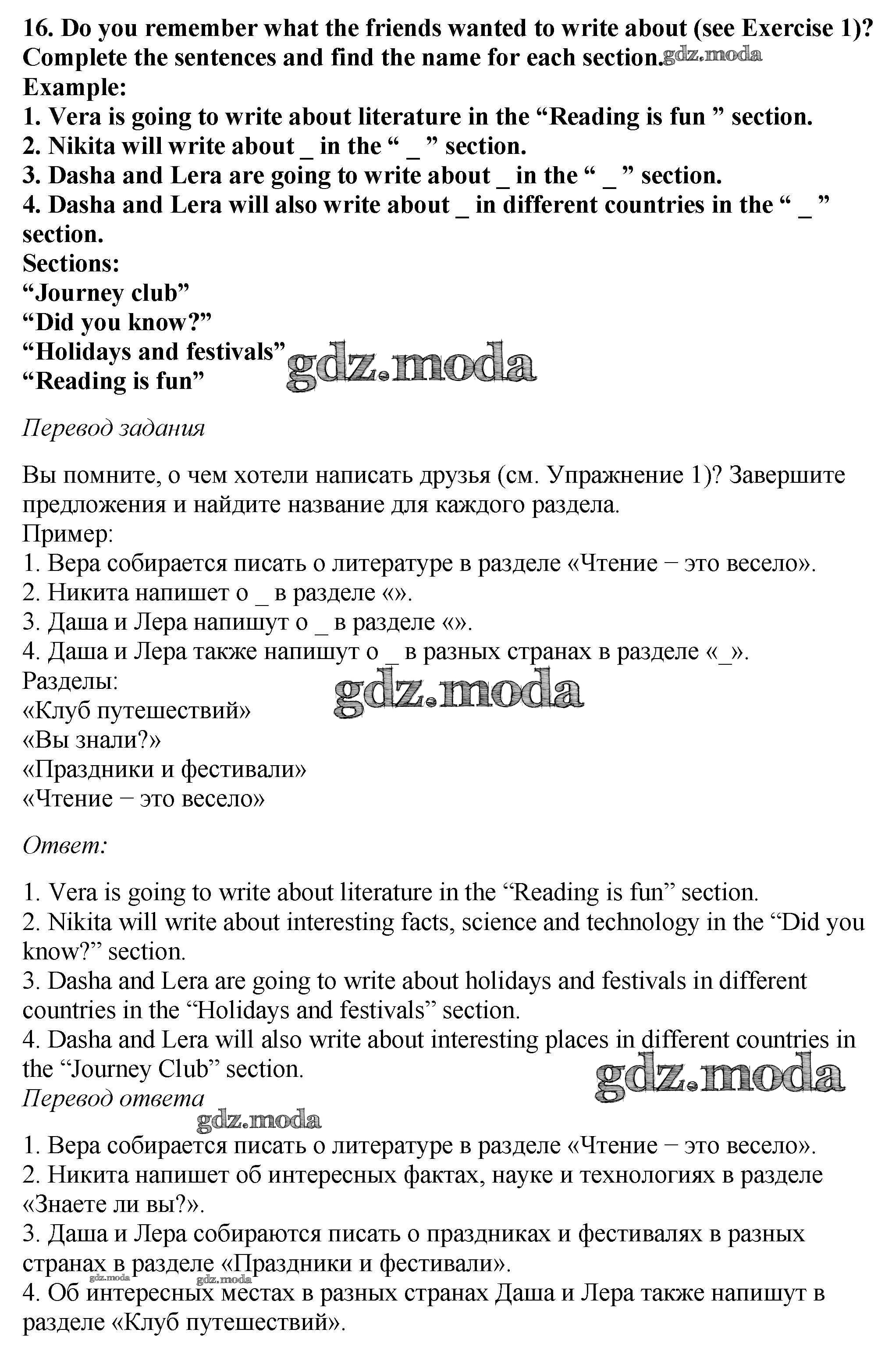 ОТВЕТ на задание № 16 Учебник по Английскому языку 5 класс Вербицкая Forward