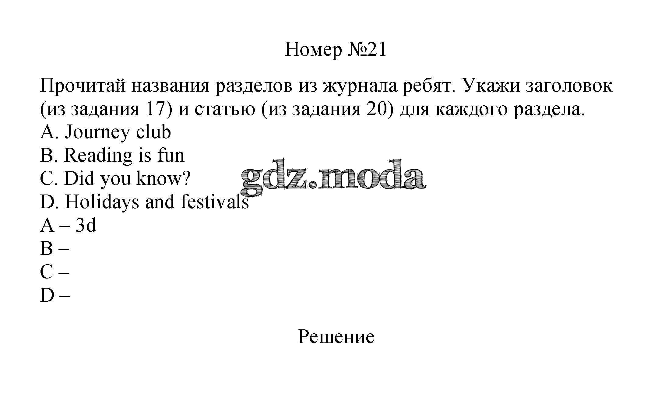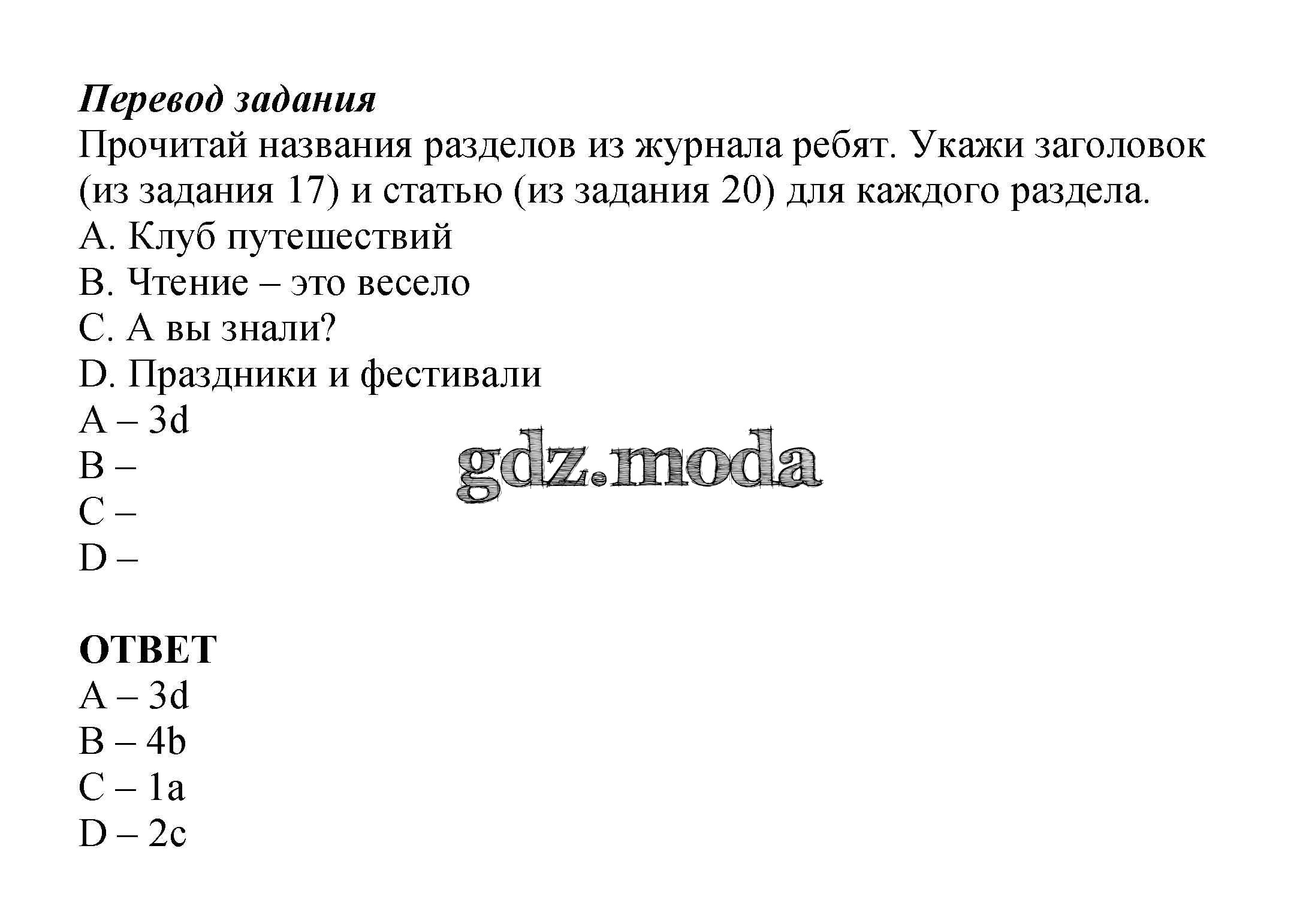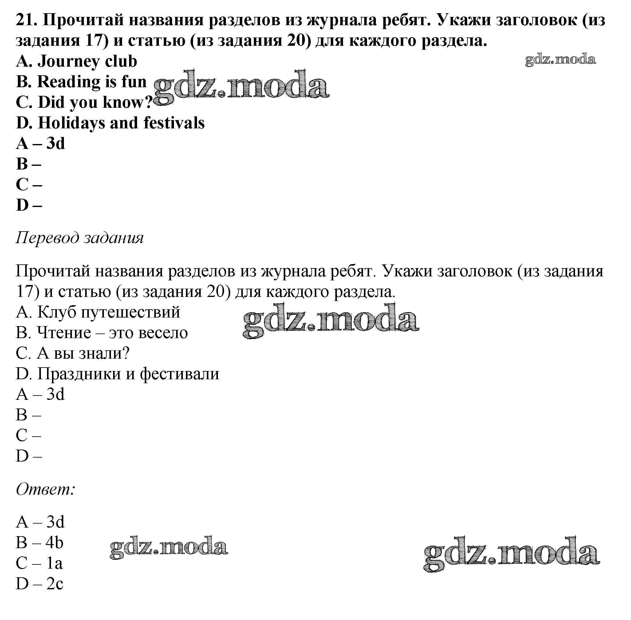 ОТВЕТ на задание № 21 Учебник по Английскому языку 5 класс Вербицкая Forward
