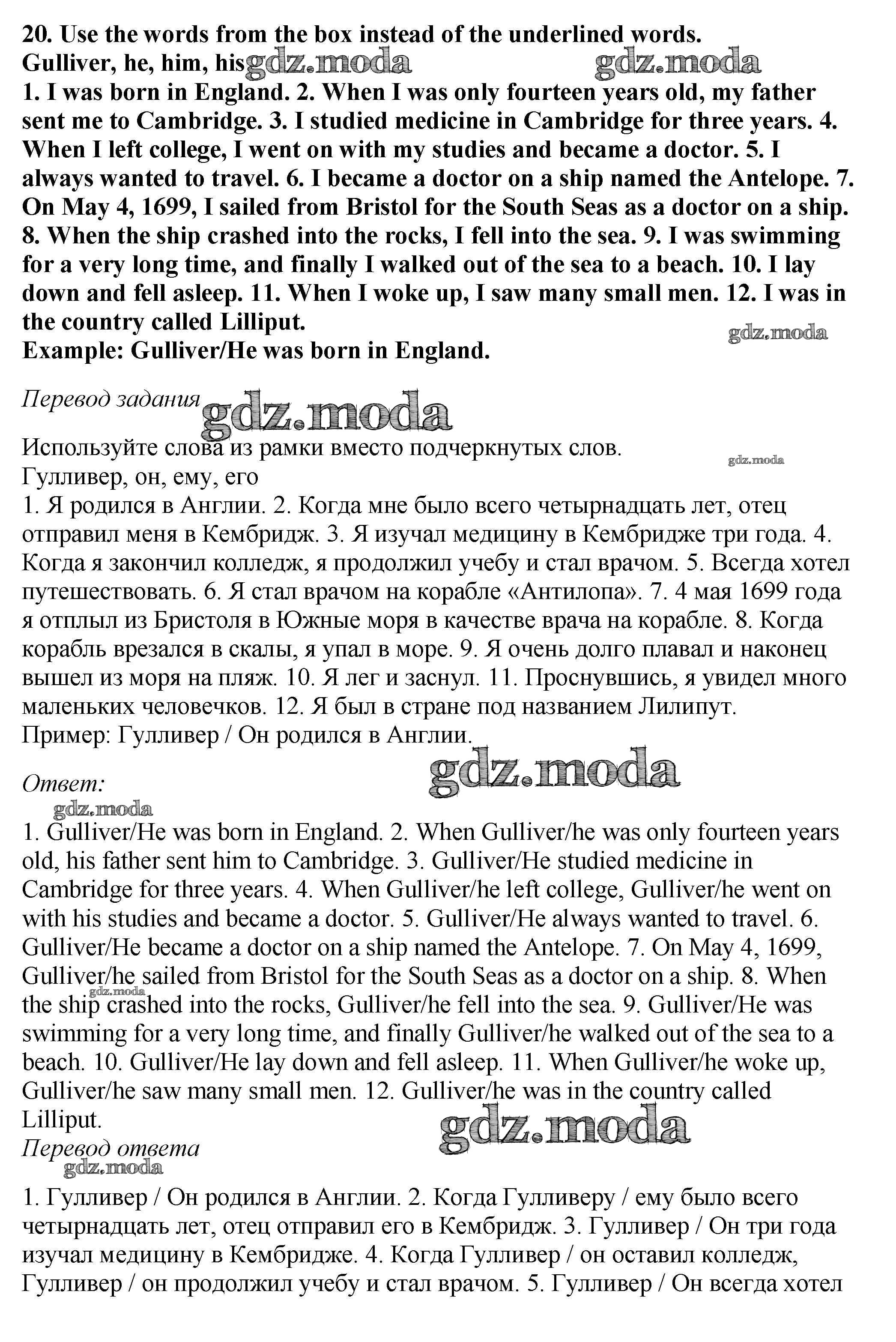 ОТВЕТ на задание № 20 Учебник по Английскому языку 5 класс Вербицкая Forward
