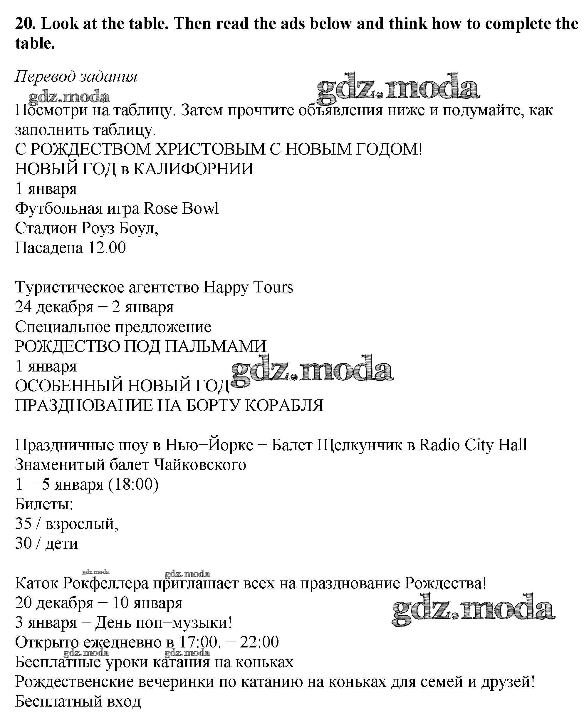 ОТВЕТ на задание № 20 Учебник по Английскому языку 5 класс Вербицкая Forward