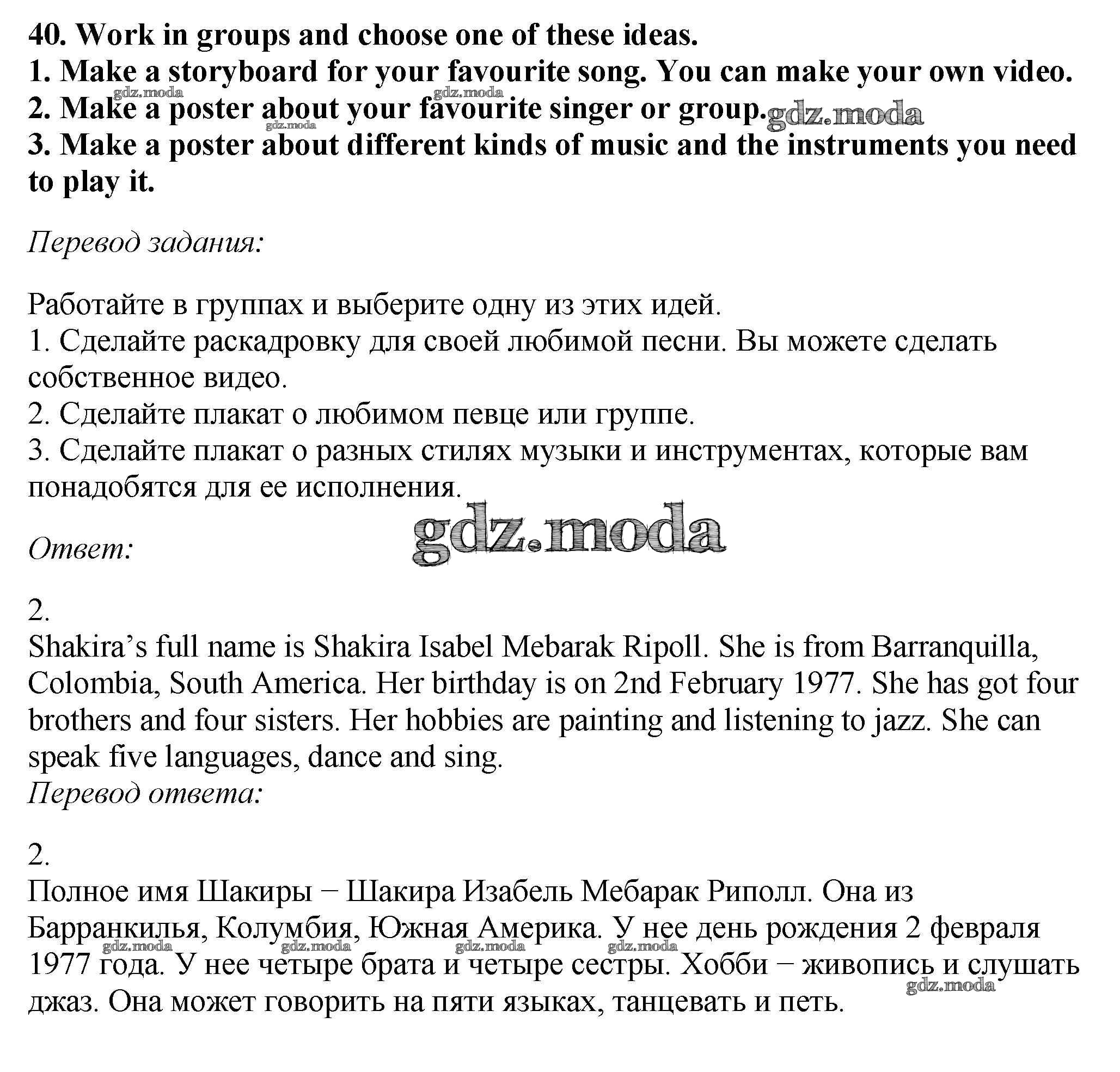 ОТВЕТ на задание № 40 Учебник по Английскому языку 5 класс Вербицкая Forward