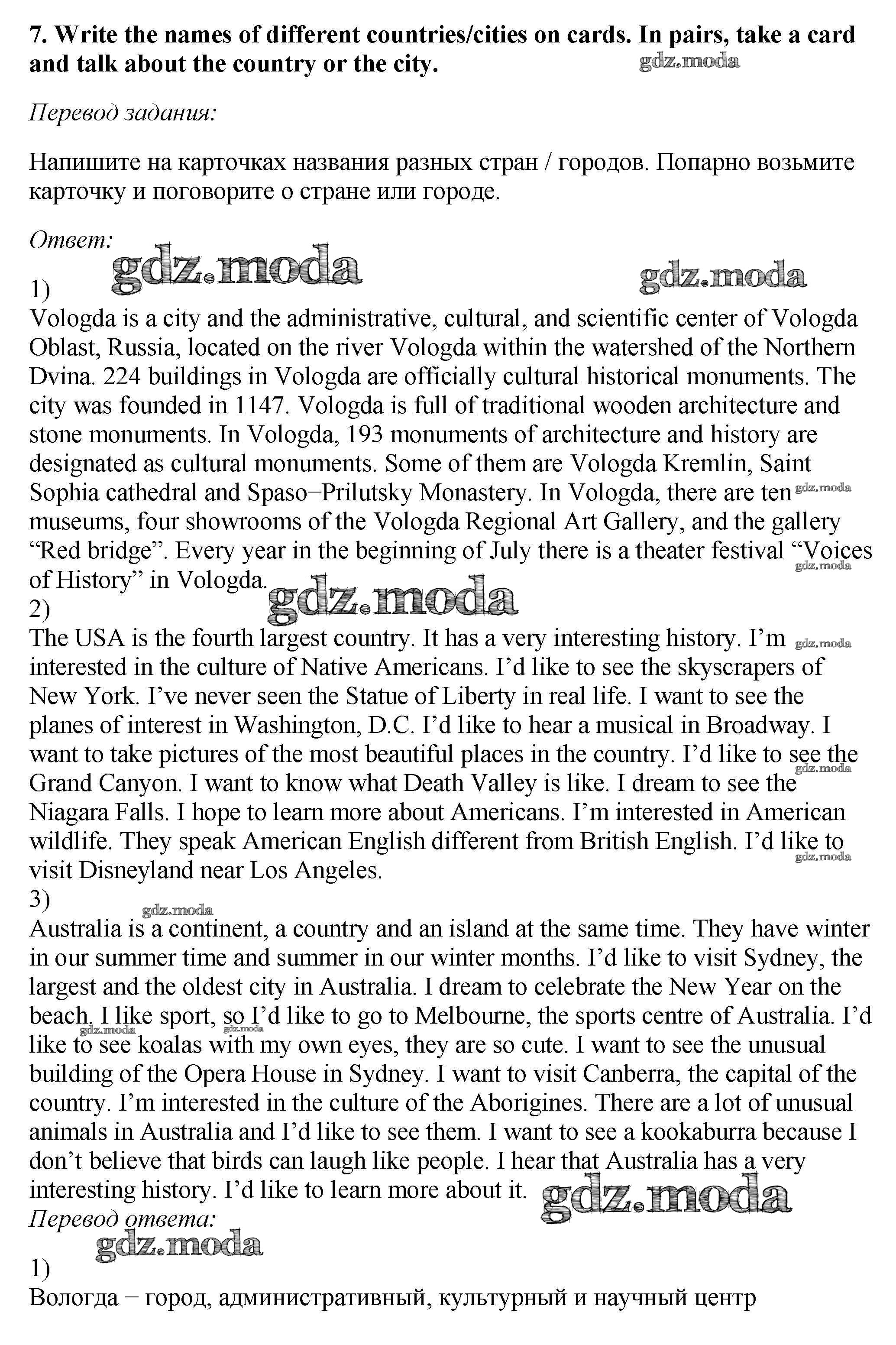 ОТВЕТ на задание № 7 Учебник по Английскому языку 5 класс Вербицкая Forward