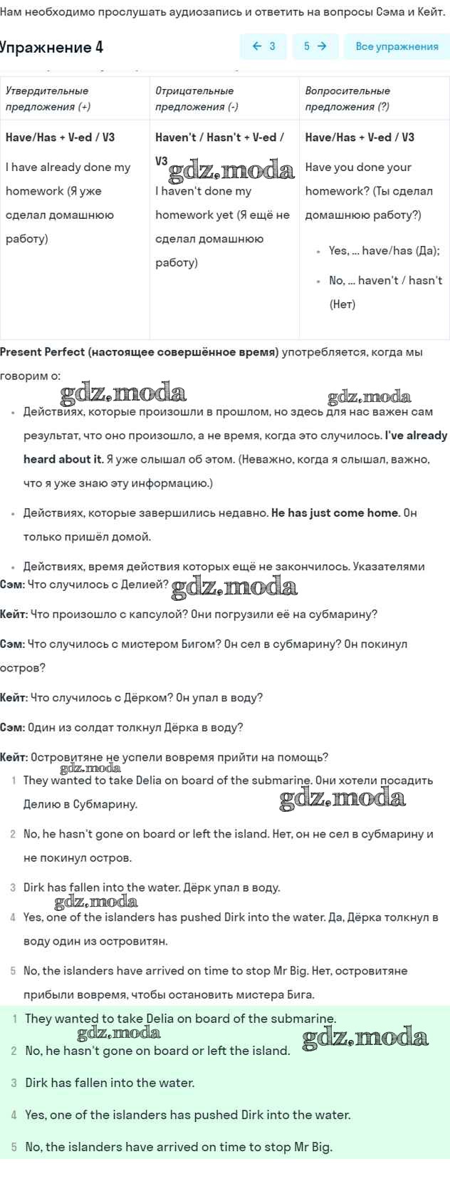 ОТВЕТ на задание № 4 Учебник по Английскому языку 5 класс Вербицкая Forward
