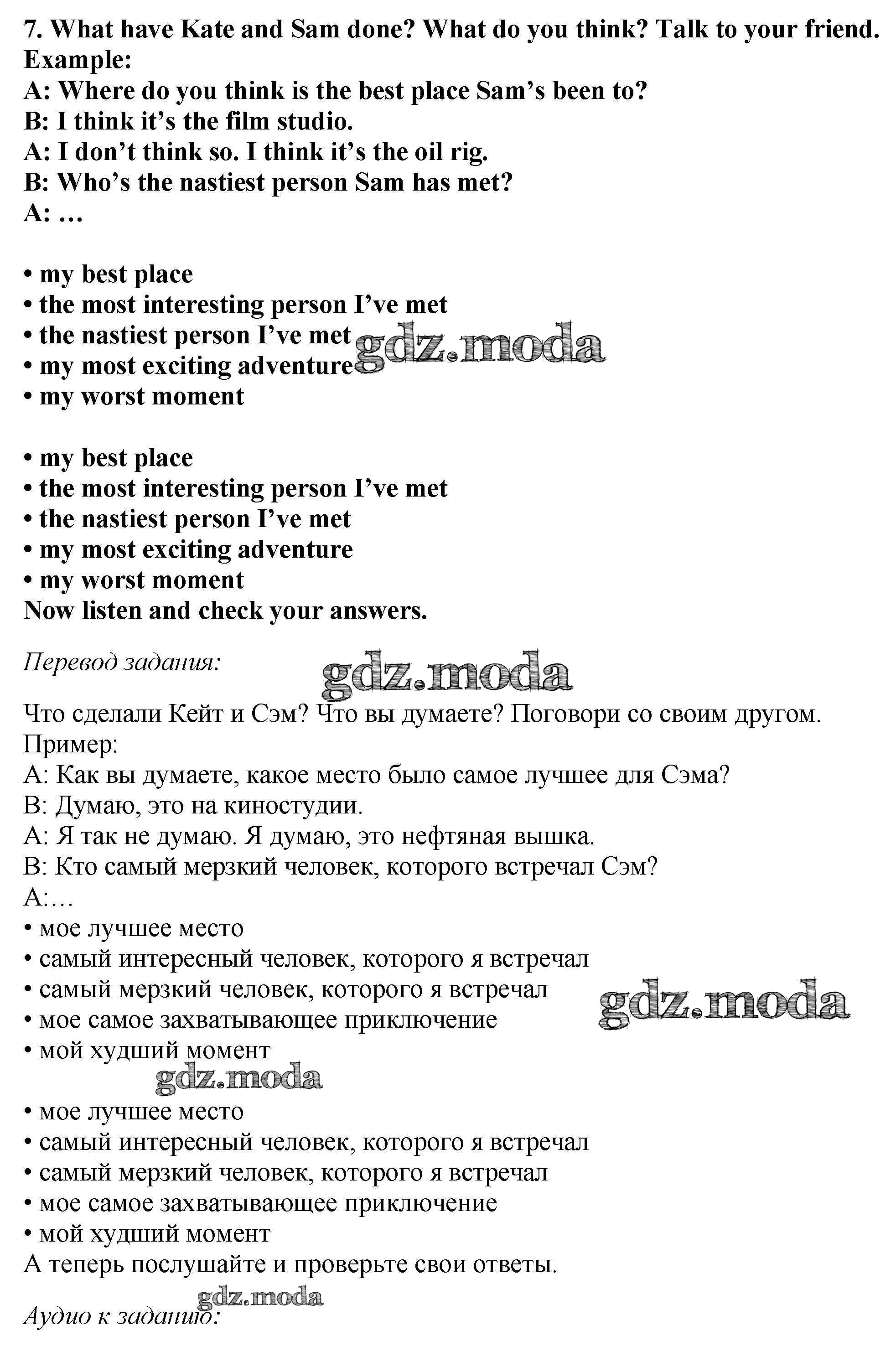 ОТВЕТ на задание № 7 Учебник по Английскому языку 5 класс Вербицкая Forward