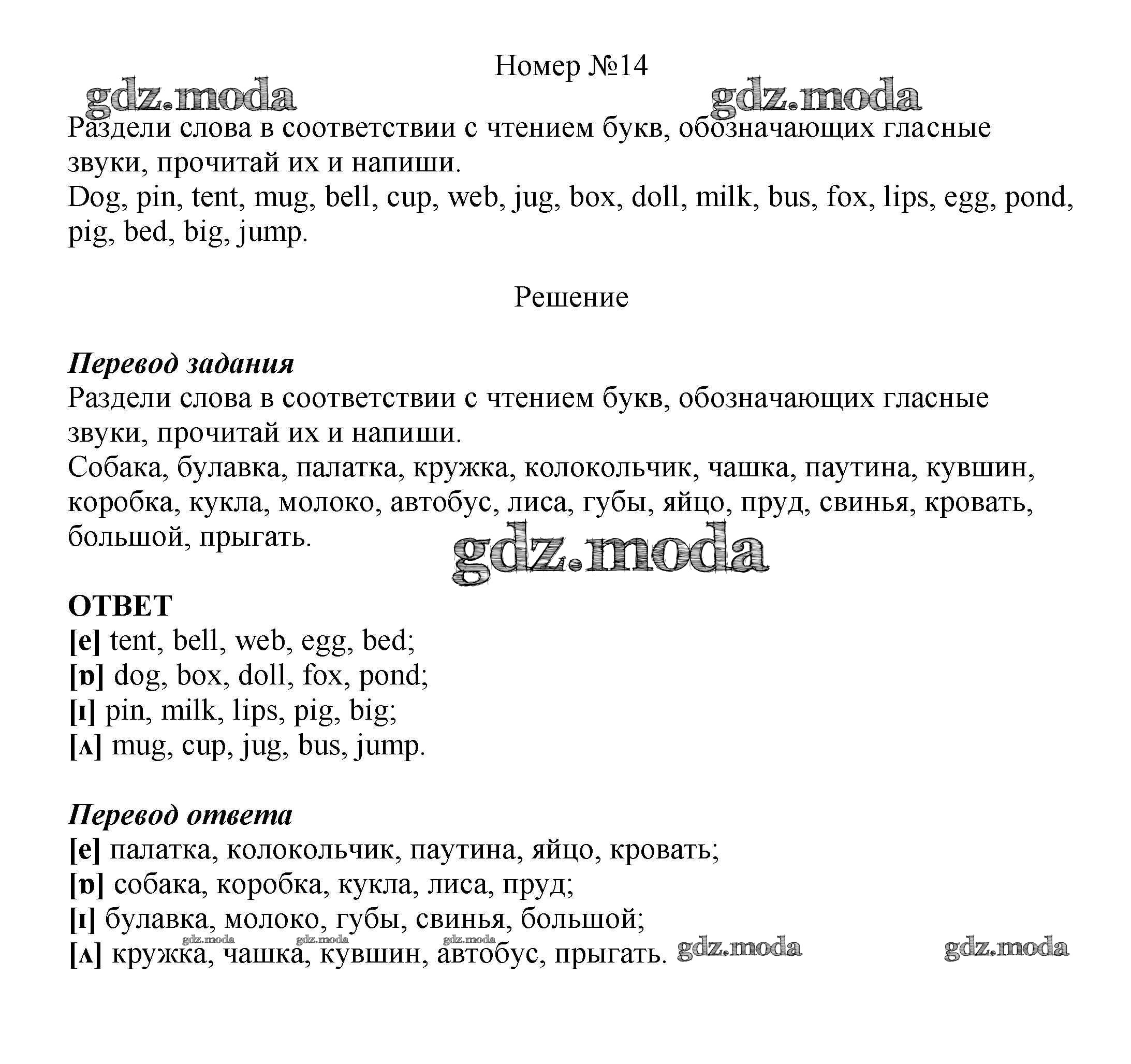 ГДЗ решение к заданию № 14 Английский язык как второй иностранный 5 класс рабочая тетрадь Афанасьева О.В. Дрофа 2017 Часть 1, Часть 2 ФГОС бесплатно на гдз.мода!