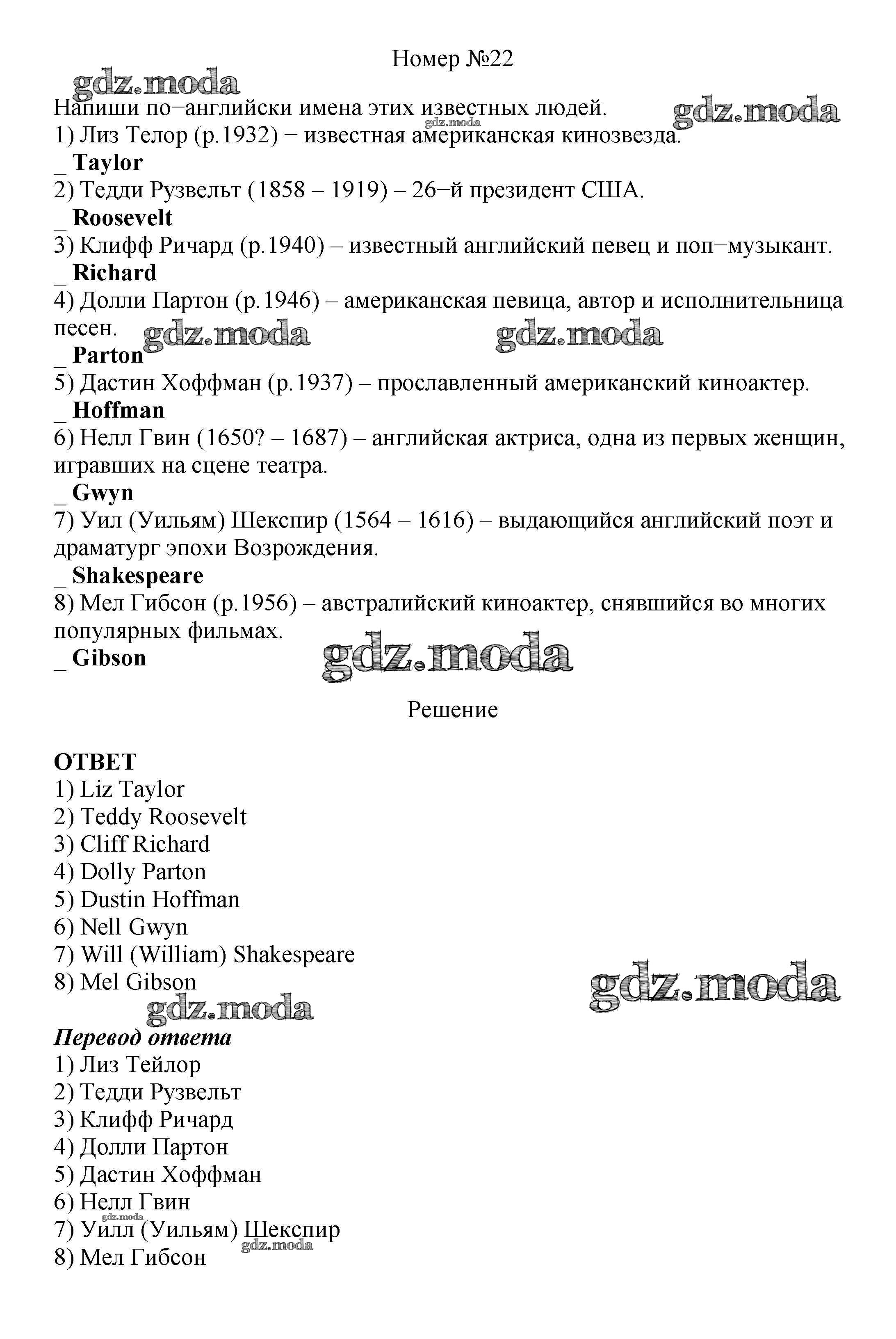 ГДЗ решение к заданию № 22 Английский язык как второй иностранный 5 класс рабочая тетрадь Афанасьева О.В. Дрофа 2017 Часть 1, Часть 2 ФГОС бесплатно на гдз.мода!