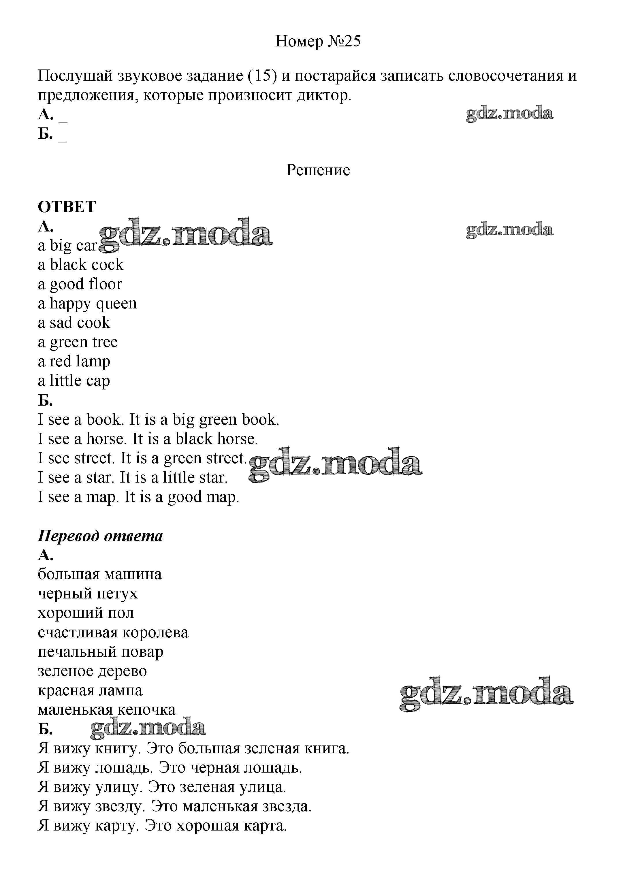 ГДЗ решение к заданию № 25 Английский язык как второй иностранный 5 класс рабочая тетрадь Афанасьева О.В. Дрофа 2017 Часть 1, Часть 2 ФГОС бесплатно на гдз.мода!