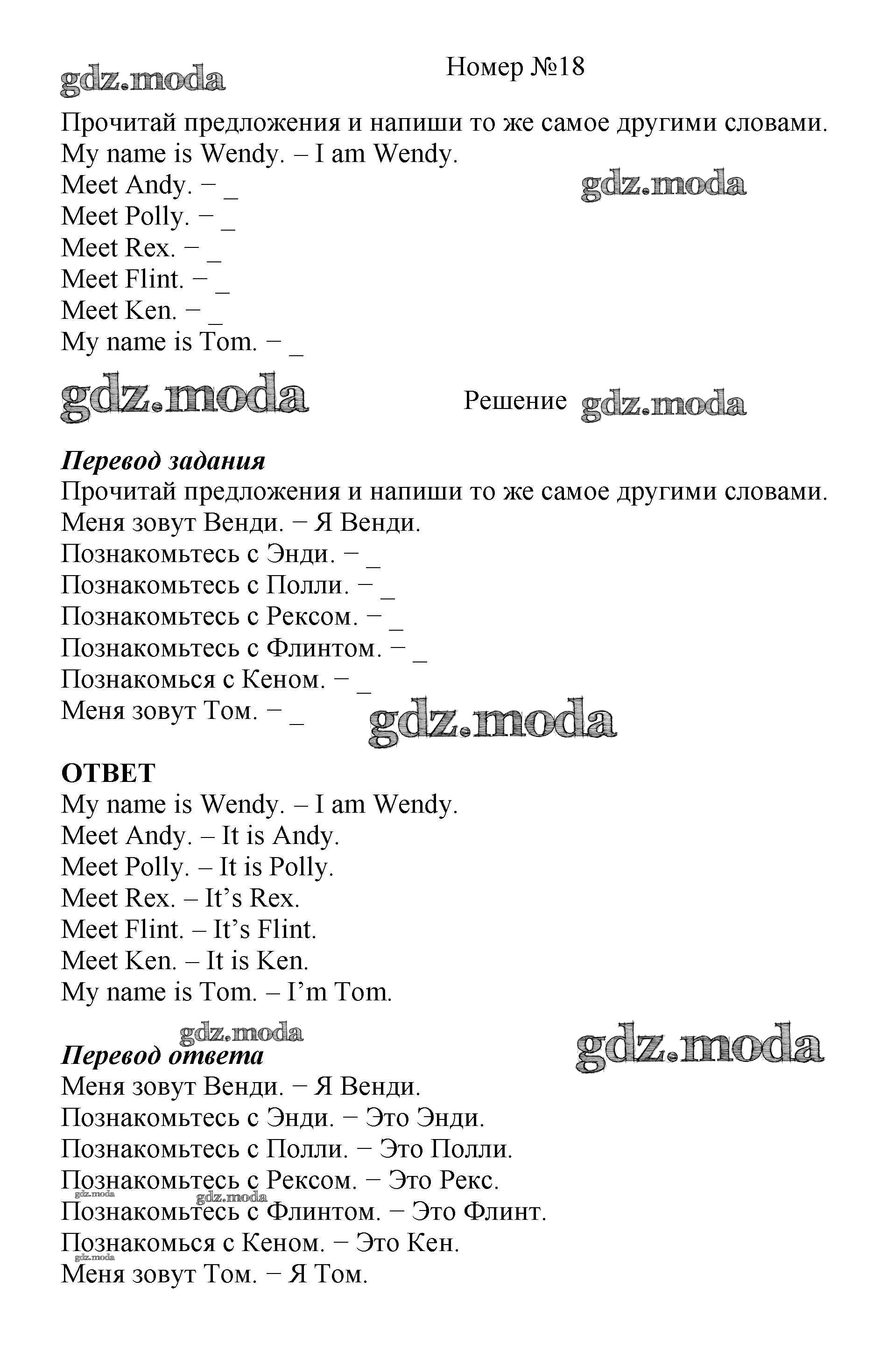 ГДЗ решение к заданию № 18 Английский язык как второй иностранный 5 класс рабочая тетрадь Афанасьева О.В. Дрофа 2017 Часть 1, Часть 2 ФГОС бесплатно на гдз.мода!