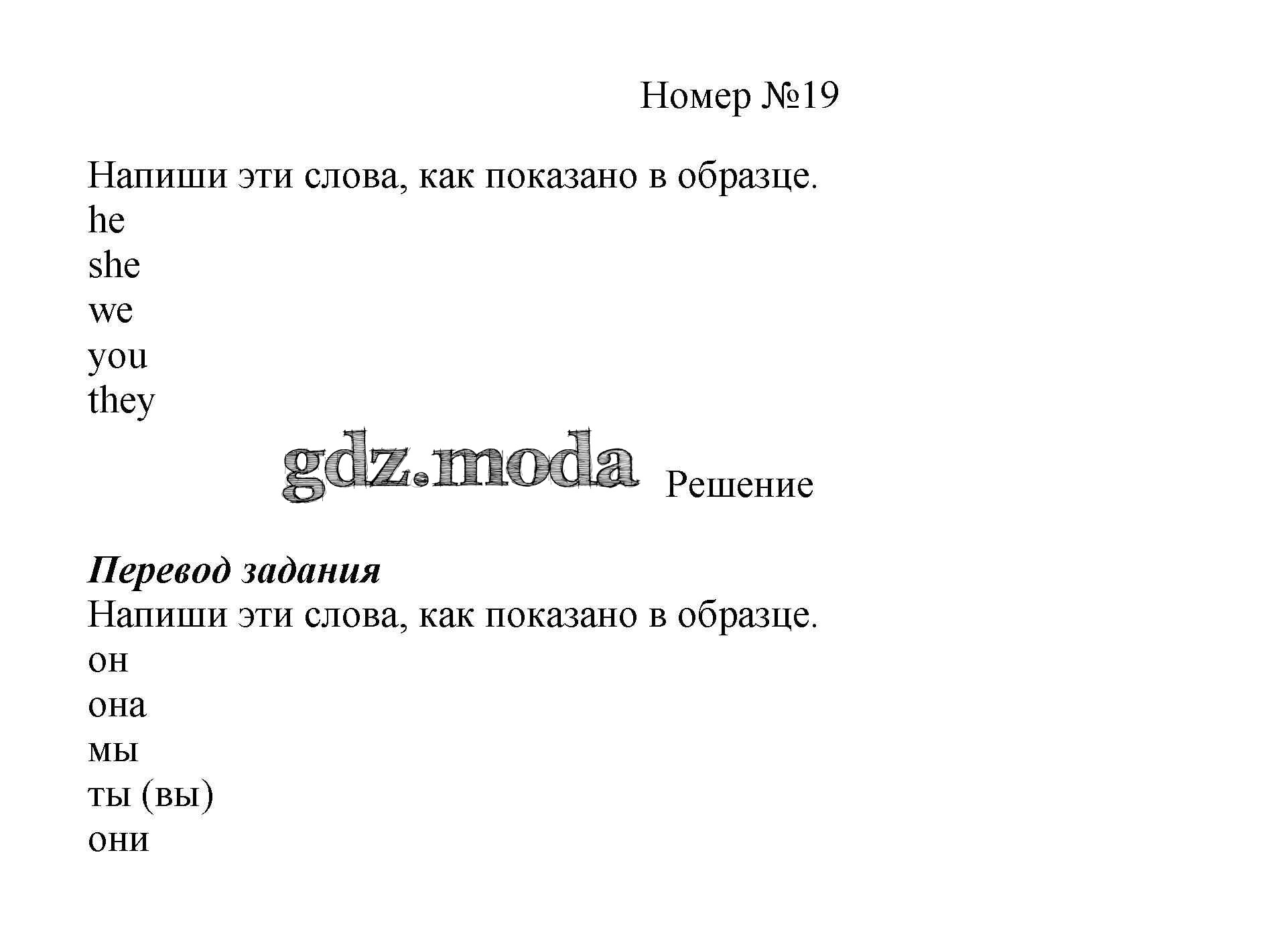 ГДЗ решение к заданию № 19 Английский язык как второй иностранный 5 класс рабочая тетрадь Афанасьева О.В. Дрофа 2017 Часть 1, Часть 2 ФГОС бесплатно на гдз.мода!