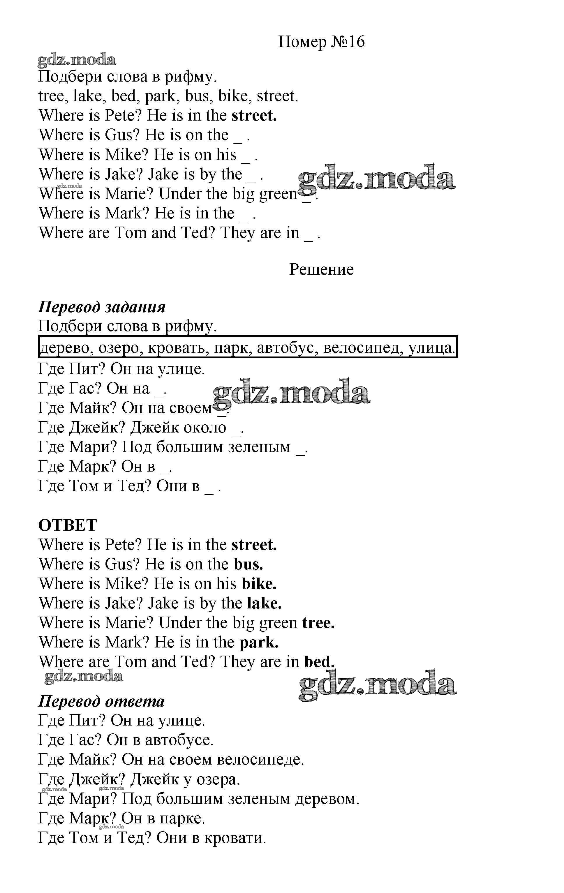 ГДЗ решение к заданию № 16 Английский язык как второй иностранный 5 класс рабочая тетрадь Афанасьева О.В. Дрофа 2017 Часть 1, Часть 2 ФГОС бесплатно на гдз.мода!