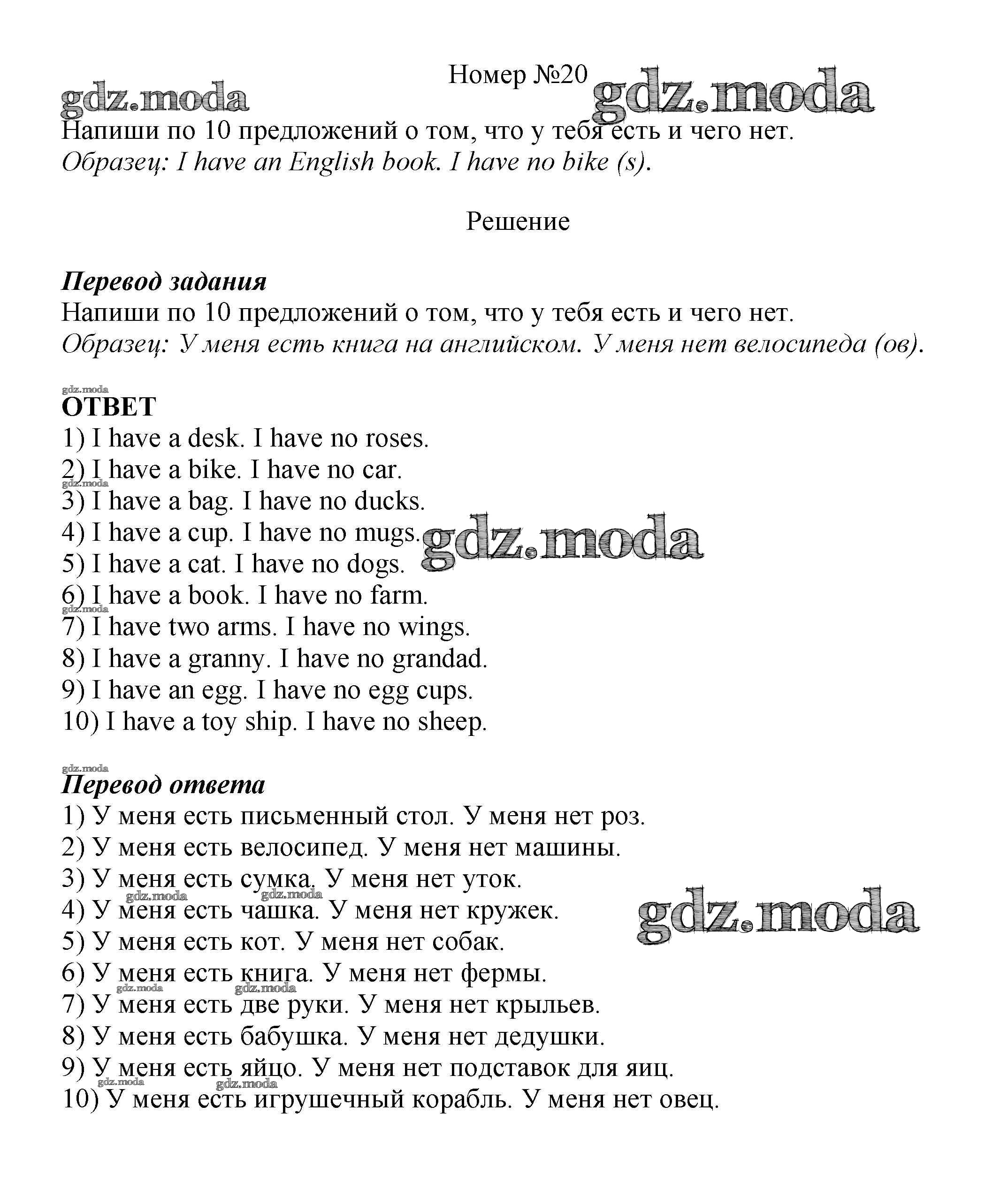 ГДЗ решение к заданию № 20 Английский язык как второй иностранный 5 класс рабочая тетрадь Афанасьева О.В. Дрофа 2017 Часть 1, Часть 2 ФГОС бесплатно на гдз.мода!