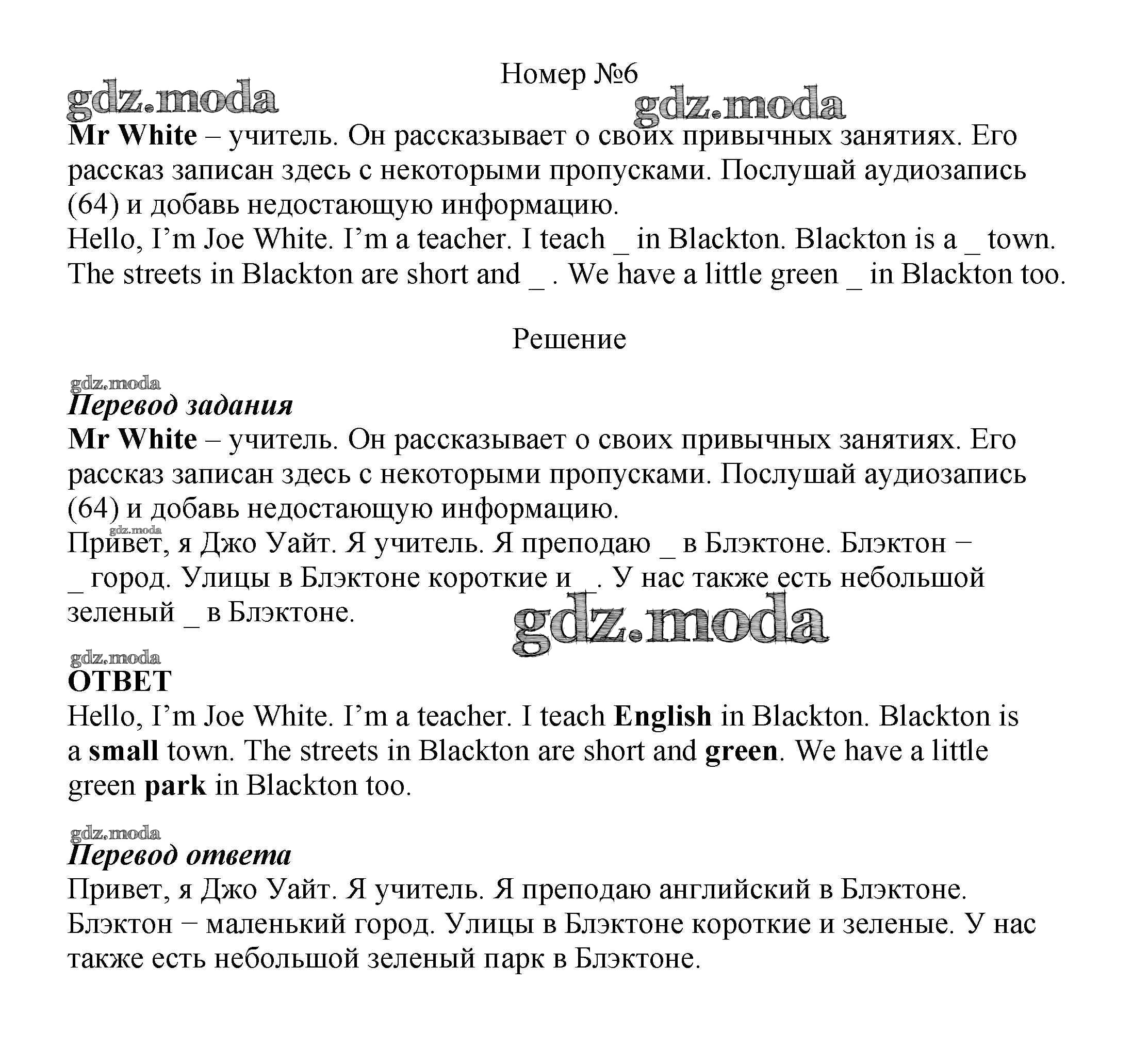 ГДЗ решение к заданию № 6 Английский язык как второй иностранный 5 класс рабочая тетрадь Афанасьева О.В. Дрофа 2017 Часть 1, Часть 2 ФГОС бесплатно на гдз.мода!