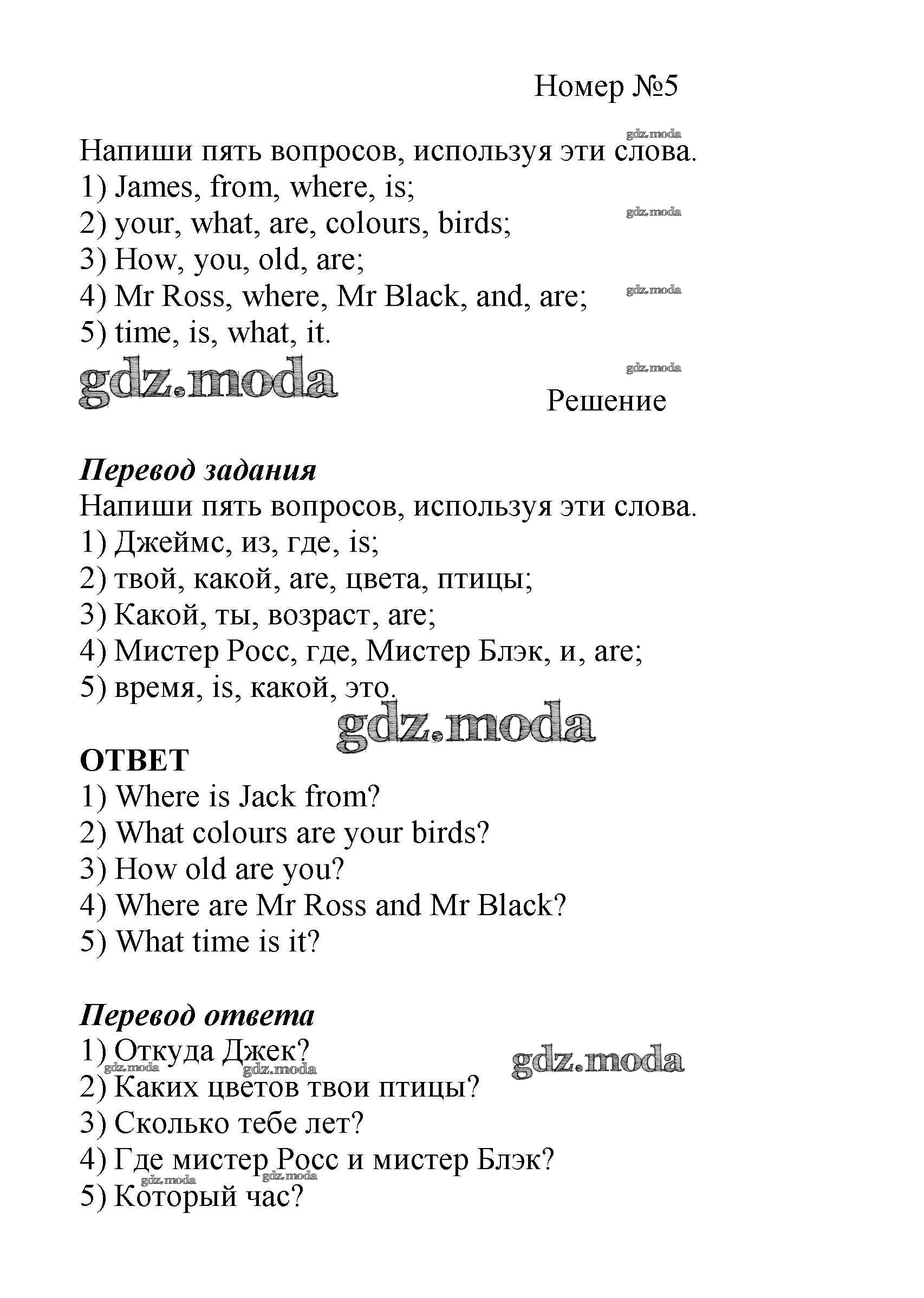 ГДЗ решение к заданию № 5 Английский язык как второй иностранный 5 класс рабочая тетрадь Афанасьева О.В. Дрофа 2017 Часть 1, Часть 2 ФГОС бесплатно на гдз.мода!