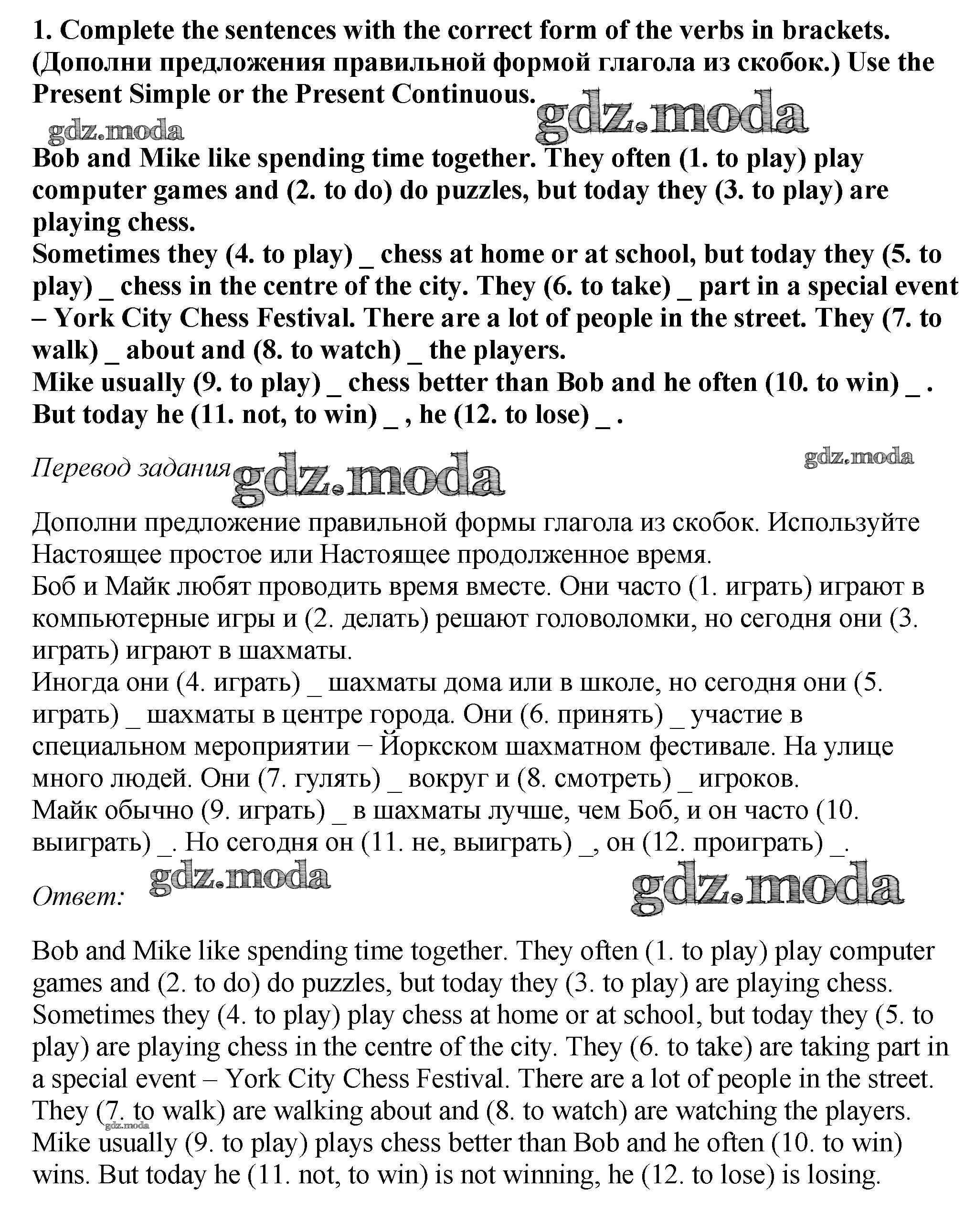 ОТВЕТ на задание № 1 Рабочая тетрадь по Английскому языку 5 класс Вербицкая Forward