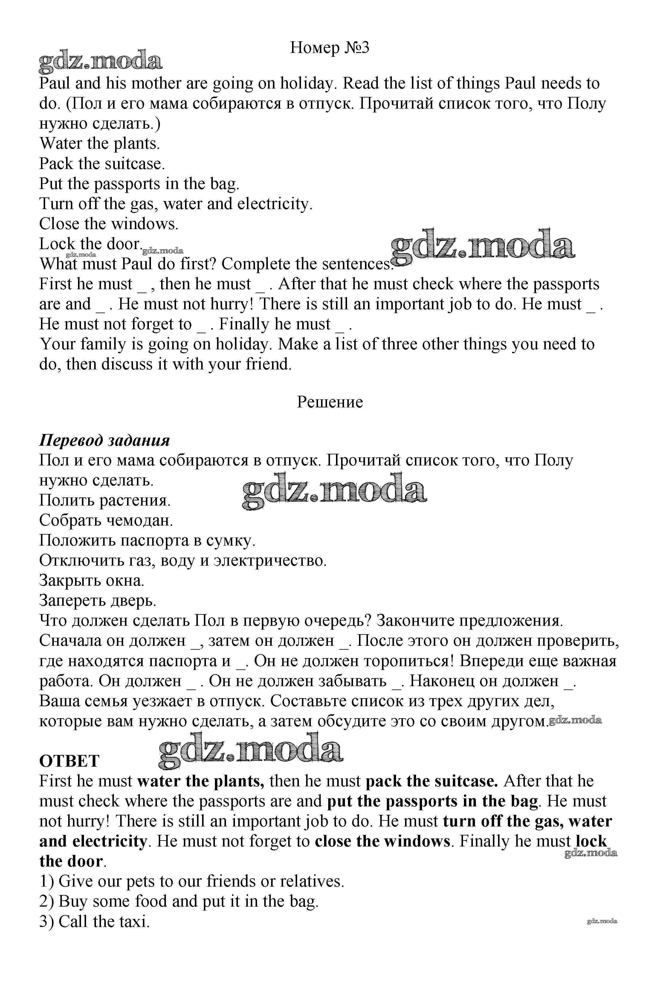 ОТВЕТ на задание № 3 Рабочая тетрадь по Английскому языку 5 класс Вербицкая Forward