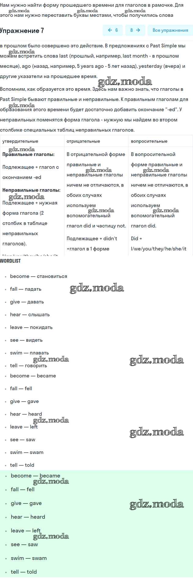 ОТВЕТ на задание № 7 Рабочая тетрадь по Английскому языку 5 класс Вербицкая Forward