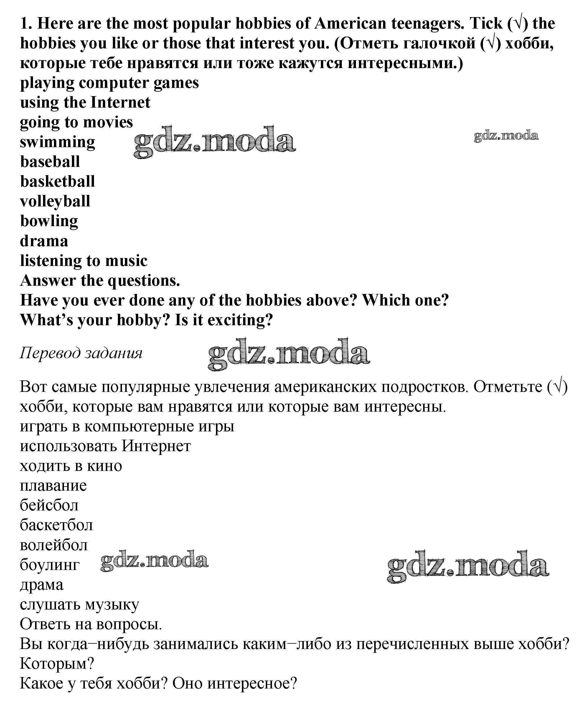 ОТВЕТ на задание № 1 Рабочая тетрадь по Английскому языку 5 класс Вербицкая Forward