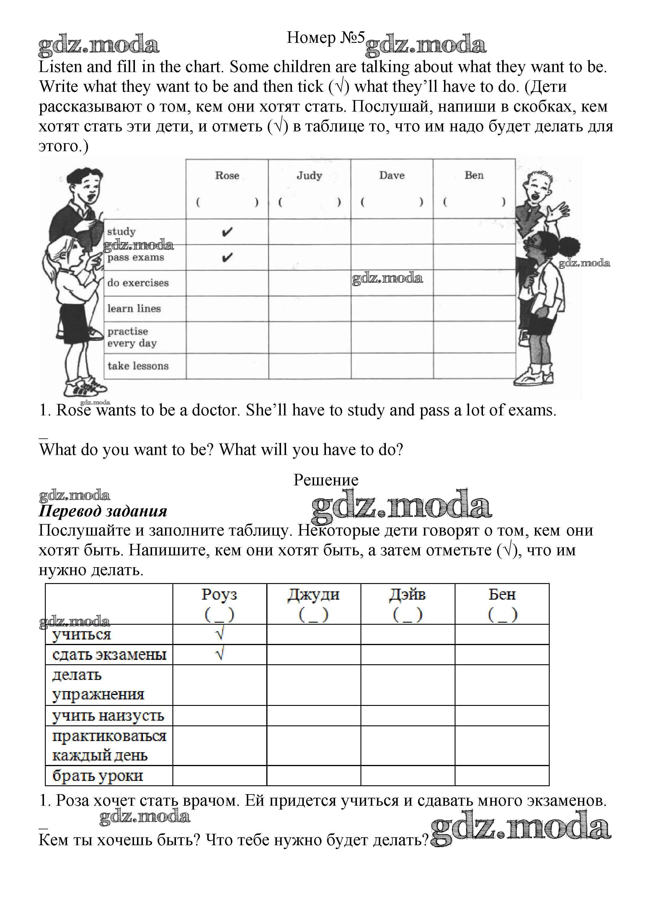ОТВЕТ на задание № 5 Рабочая тетрадь по Английскому языку 5 класс Вербицкая Forward