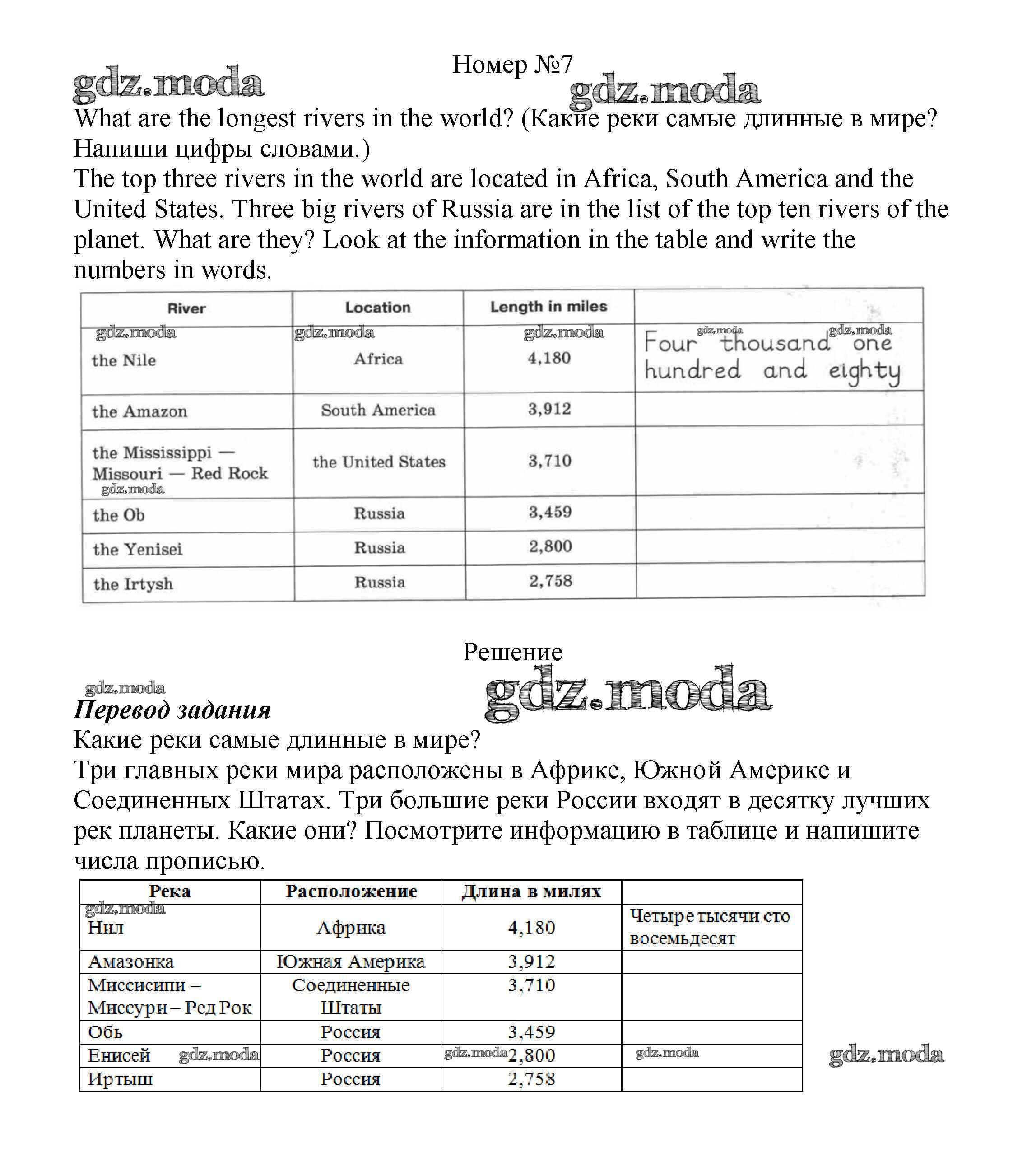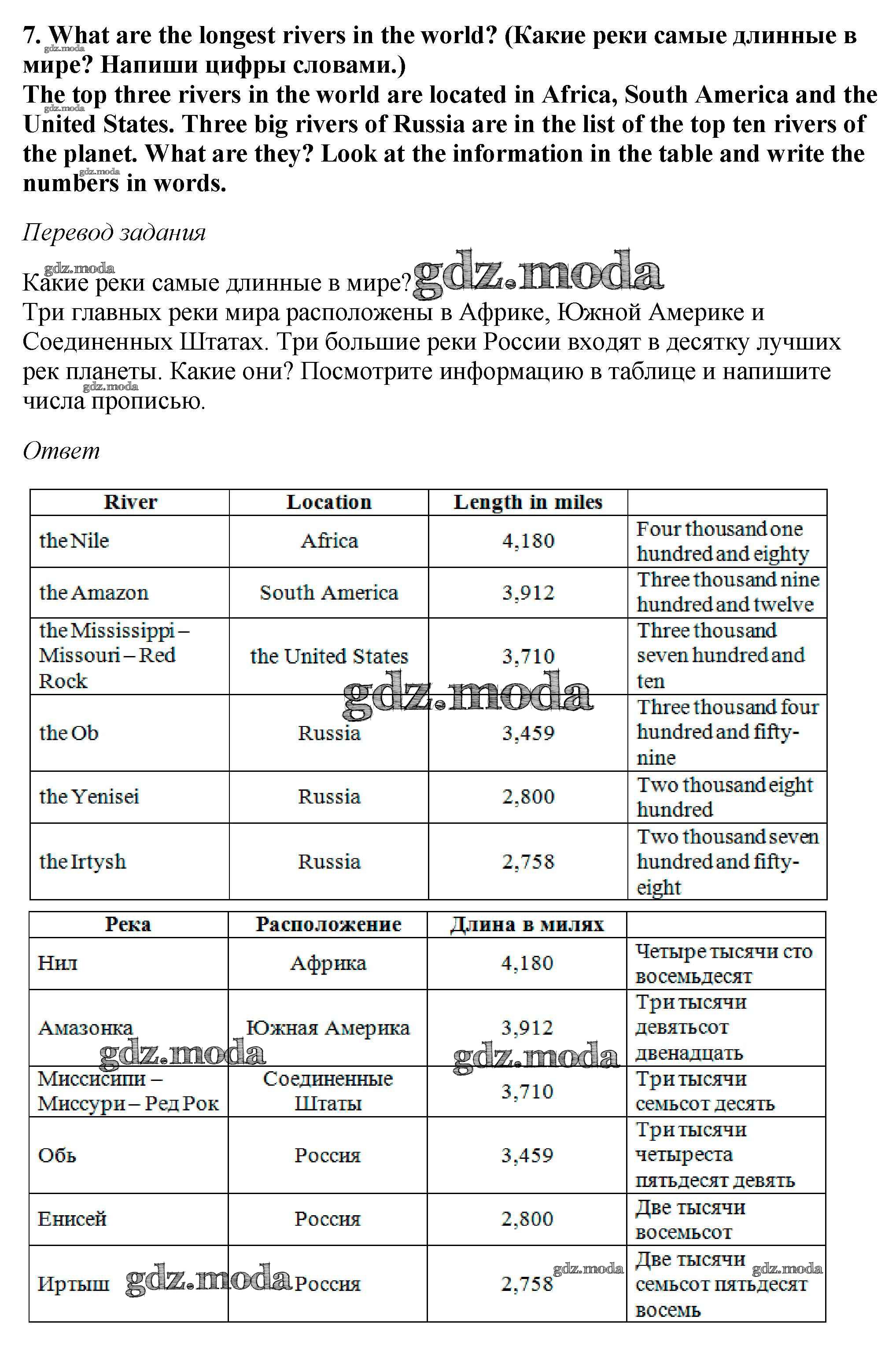ОТВЕТ на задание № 7 Рабочая тетрадь по Английскому языку 5 класс Вербицкая Forward