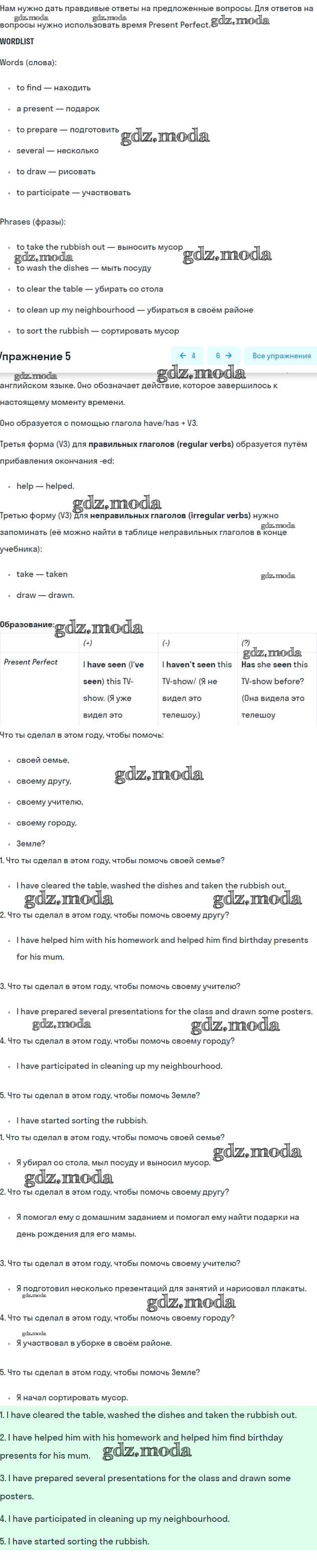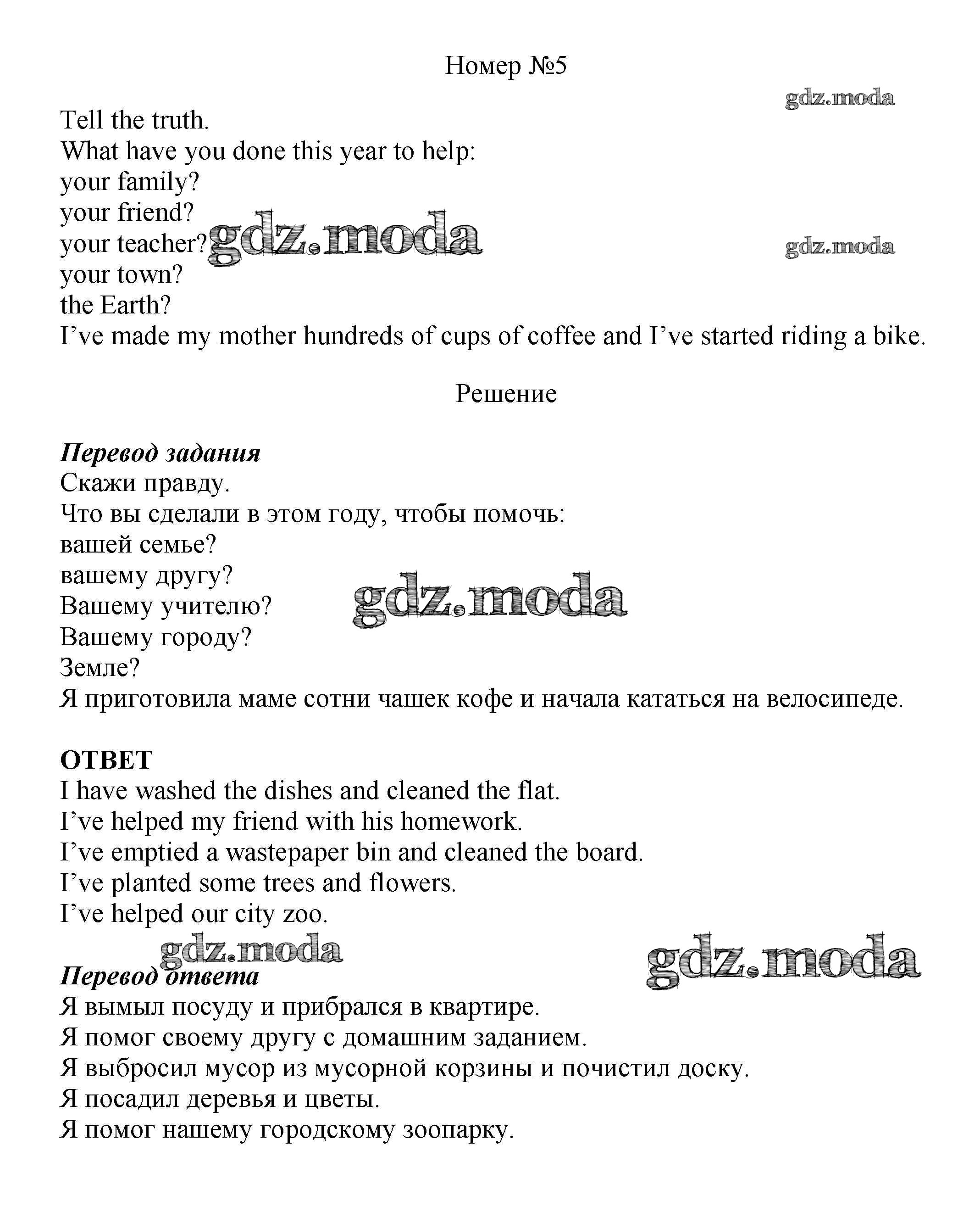 ОТВЕТ на задание № 5 Рабочая тетрадь по Английскому языку 5 класс Вербицкая Forward