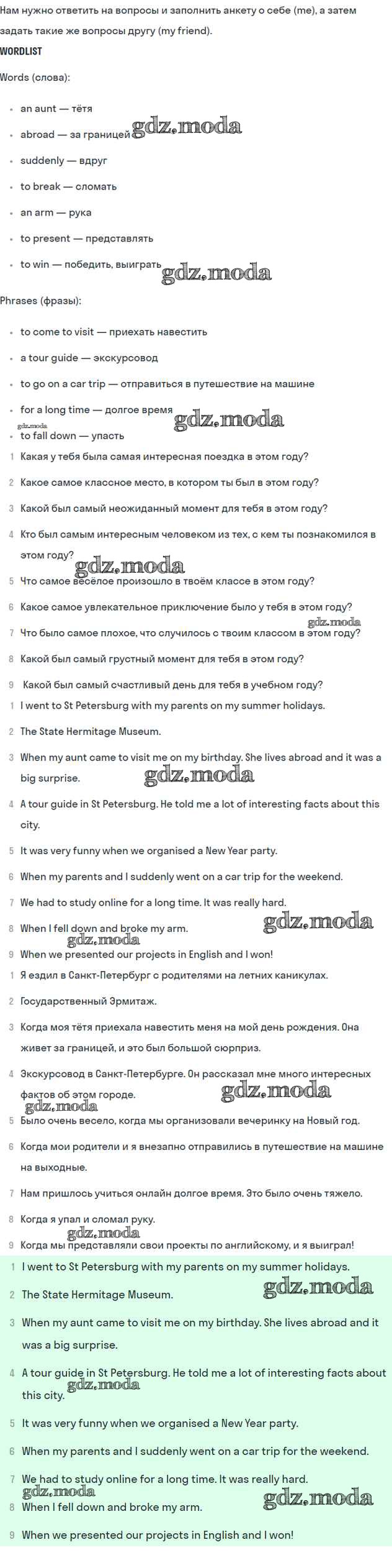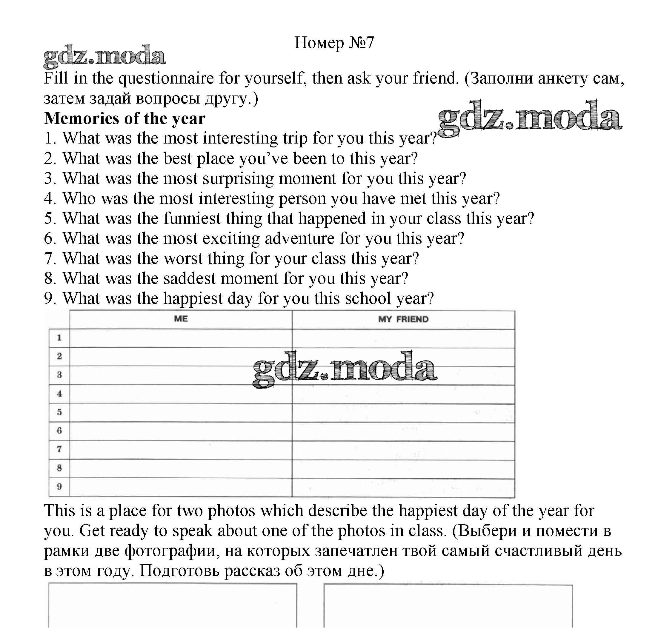 ОТВЕТ на задание № 7 Рабочая тетрадь по Английскому языку 5 класс Вербицкая Forward