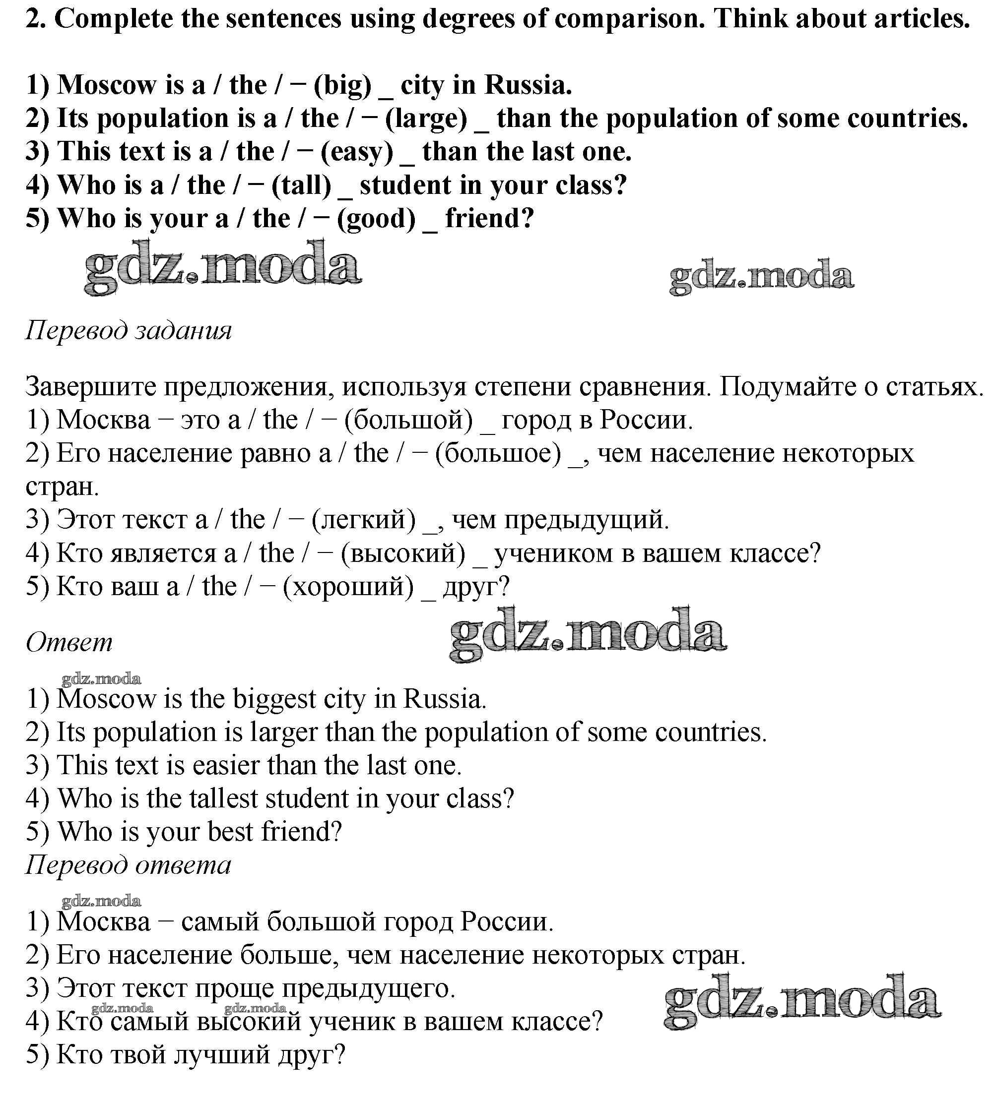 ОТВЕТ на задание № 2 Рабочая тетрадь по Английскому языку 5 класс Вербицкая Forward
