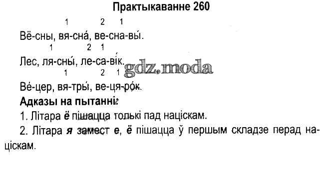 ГДЗ решение к заданию № 260 Белорусский язык 5 класс Красней В.П. Национальный институт образования 2014 Часть 1, Часть 2  ФГОС бесплатно на гдз.мода!
