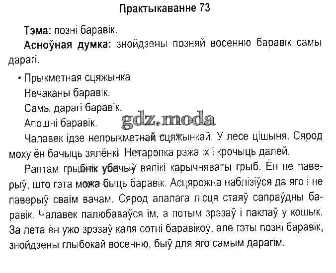 ГДЗ решение к заданию № 73 Белорусский язык 5 класс Красней В.П. Национальный институт образования 2014 Часть 1, Часть 2  ФГОС бесплатно на гдз.мода!