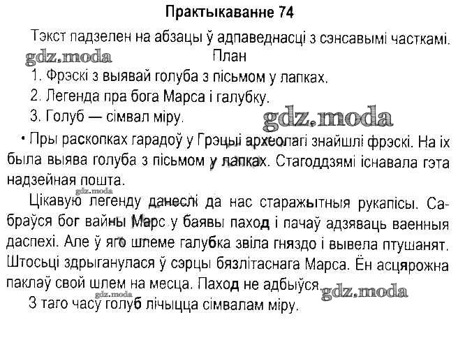 ГДЗ решение к заданию № 74 Белорусский язык 5 класс Красней В.П. Национальный институт образования 2014 Часть 1, Часть 2  ФГОС бесплатно на гдз.мода!