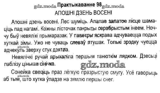 ГДЗ решение к заданию № 98 Белорусский язык 5 класс Красней В.П. Национальный институт образования 2014 Часть 1, Часть 2  ФГОС бесплатно на гдз.мода!