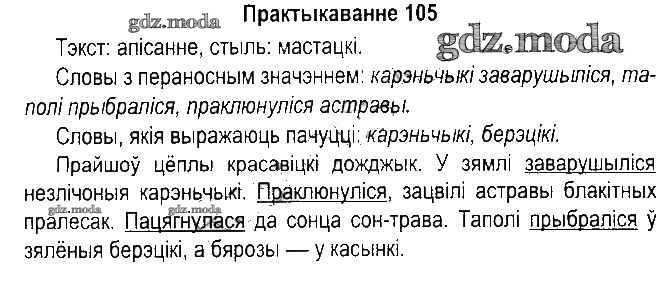 ГДЗ решение к заданию № 105 Белорусский язык 5 класс Красней В.П. Национальный институт образования 2014 Часть 1, Часть 2  ФГОС бесплатно на гдз.мода!