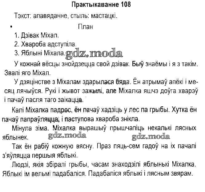ГДЗ решение к заданию № 108 Белорусский язык 5 класс Красней В.П. Национальный институт образования 2014 Часть 1, Часть 2  ФГОС бесплатно на гдз.мода!