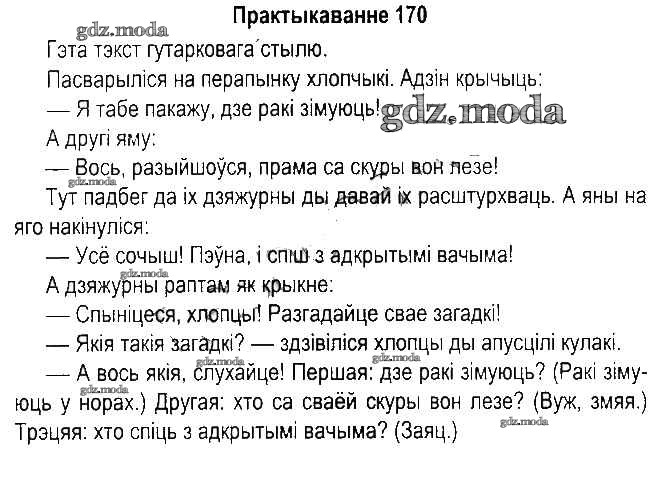 ГДЗ решение к заданию № 170 Белорусский язык 5 класс Красней В.П. Национальный институт образования 2014 Часть 1, Часть 2  ФГОС бесплатно на гдз.мода!